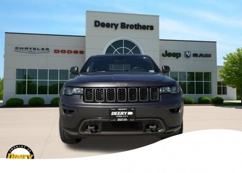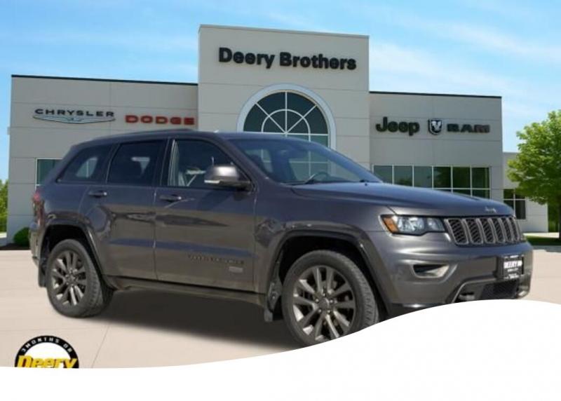 This Local Trade In has a Clean Carfax and is Deery Certified! This highly sought after 75th Anniversary Pkg was traded in for a brand new Jeep Grand Cherokee! ** Local Trade In, ** Clean Carfax, ** Deery Certified, 75th Anniversary Badge, 8.4' Touchscreen Display, Accent Color Roof Rails, Auto-dimming Rear-View mirror, Blind Spot Cross Path Detection, Body Color Door Handles, Body Color Exterior Mirrors, Body Color Fascias, Body Color Grille w/Bronze Accent, Body Color Shark Fin Antenna, Bronze Fascia Applique, Dark Day Light Opening Moldings, Dark Headlamp Bezel Finish, Dark Lens Taillamps, Exterior Parking Camera Rear, Front Bronze Tow Hooks, Garage door transmitter, Gloss Black Claddings, GPS Navigation, HD Radio, Heated front seats, Heated rear seats, Heated steering wheel, Jeep 75th Anniversary Package, Jeep Bronze Badging, Memory seat, Moroccan Sun Interior Accents, Power driver seat, Power Liftgate, Power Sunroof, Premium Leather Trimmed Bucket Seats, Quadra-Drive II 4WD System, Quick Order Package 23K 75th Anniversary, Radio: Uconnect 8.4 NAV, Rear Parking Sensors, Tangerine Interior Accents, Wheels: 20' x 8.0' 75th Version B. The Deery discount that you see includes a Dealer Trade In Assistance Bonus discount of $1,000. Trade in must be 2008 or newer with less than 200,000 miles, and have a clean title. Clean CARFAX. Certified. Odometer is 24310 miles below market average! Recent Arrival! Granite Crystal Metallic Clearcoat 2016 Jeep Grand Cherokee Limited 4D Sport Utility 3.6L V6 24V VVT 18/25 City/Highway MPG 8-Speed Automatic 4WD Certification Program Details: DEERY CERTIFIED PRE-OWNED DETAILS: - $0 Deductible - 3 Months or 3,000 Miles (whichever comes first ) - Systems Covered: Gasoline/ Diesel Engine , Transmission , Drive Axle, Hybrid Components , Filters, Lubricants Taxes and Seals and Gaskets ** See Dealer for More Information. Serving Iowa City, Cedar Rapids, Waterloo, North Liberty, Davenport, Muscatine, Quad Cities, Des Moines, Keokuk, Mount Pleasant, Washington, and Dubuque. Don't miss out! Give us a call at [phone] to confirm availability and schedule a test-drive.