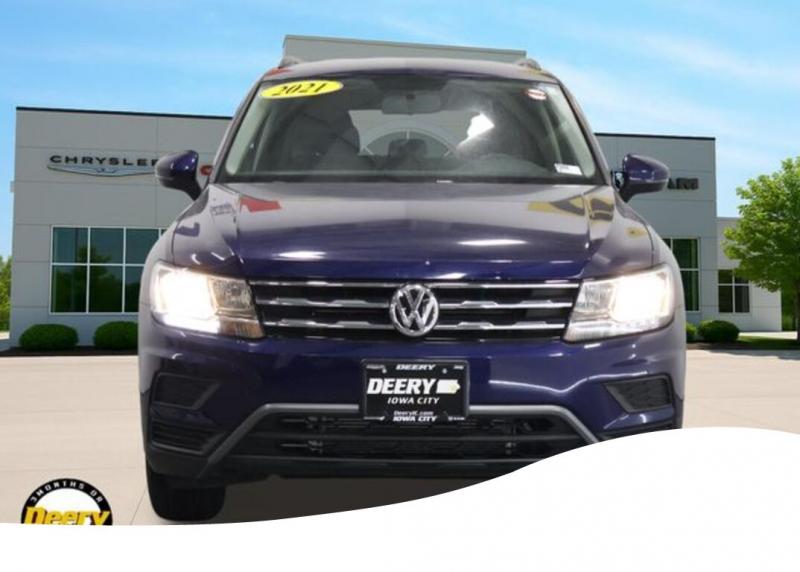 This Local Purchase has a Clean CARFAX and is Deery Certified! ** Local Purchase, ** Deery Certified, ** Clean CARFAX, Cloth Seating Surfaces, Exterior Parking Camera Rear, Forward collision: FCW w/Autonomous Emergency Braking mitigation, Wheels: 17' Multi-Spoke 2-Tone Alloy. The Deery discount that you see includes a Dealer Trade In Assistance Bonus discount of $1,000. Trade in must be 2008 or newer with less than 200,000 miles, and have a clean title. Clean CARFAX. Certified. Odometer is 6174 miles below market average! Atlantic Blue Metallic 2021 Volkswagen Tiguan 2.0T S 4D Sport Utility 2.0L TSI DOHC 21/27 City/Highway MPG 8-Speed Automatic with Tiptronic AWD Certification Program Details: DEERY CERTIFIED PRE-OWNED DETAILS: - $0 Deductible - 3 Months or 3,000 Miles (whichever comes first ) - Systems Covered: Gasoline/ Diesel Engine , Transmission , Drive Axle, Hybrid Components , Filters, Lubricants Taxes and Seals and Gaskets ** See Dealer for More Information. Serving Iowa City, Cedar Rapids, Waterloo, North Liberty, Davenport, Muscatine, Quad Cities, Des Moines, Keokuk, Mount Pleasant, Washington, and Dubuque. Don't miss out! Give us a call at [phone] to confirm availability and schedule a test-drive.