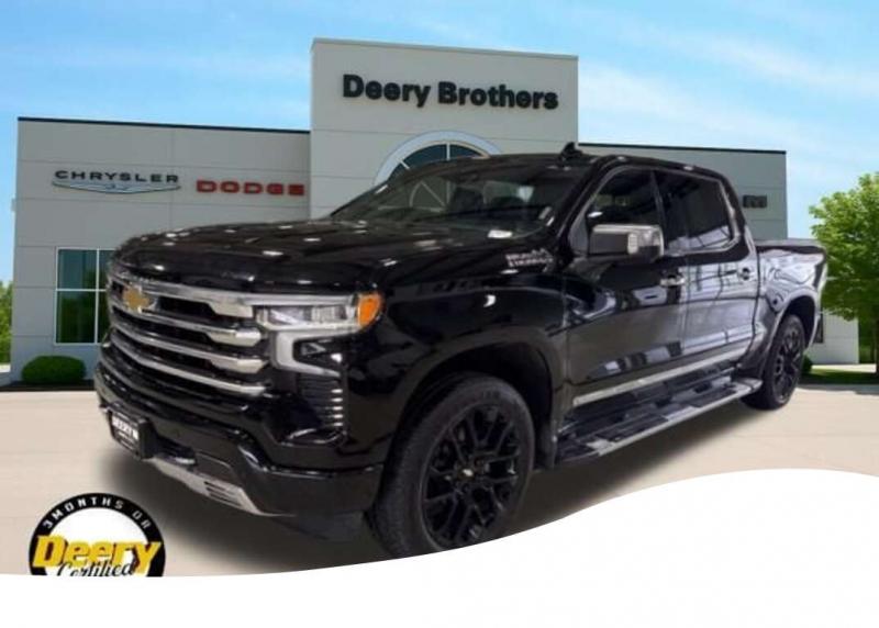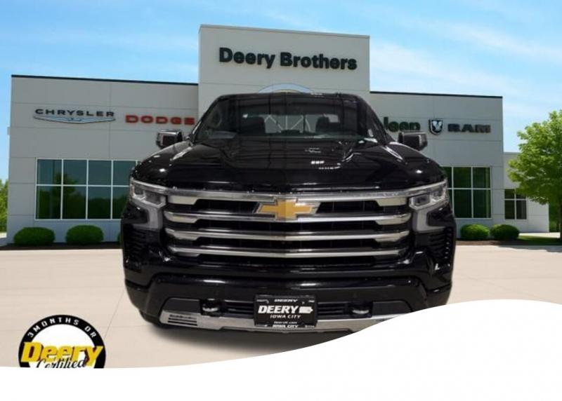 ** Local Trade In, ** Clean CARFAX, ** One Owner CARFAX, ** Deery Certified, 10-Way Power Driver Seat w/Lumbar, 10-Way Power Passenger Seat Adjuster w/Lumbar, 12.3' Multicolor Reconfigurable Digital Display, 120-Volt Bed Mounted Power Outlet, 120-Volt Instrument Panel Power Outlet, 15' Diagonal Multicolor Head-Up Display, 2nd Row Heated Outboard Seats, Adaptive Cruise Control, Adaptive Ride Control Suspension, Apple CarPlay/Android Auto, Bed View Camera, Chevytec Spray-On Black Bedliner, Chrome Assist Steps, Driver Memory, Dual Exhaust w/Polished Outlets, Dual Rear USB Ports (Charge Only), Electronic Cruise Control, Front LED Fog Lamps, Front Rainsensing Wipers, HD Surround Vision, Heated Driver Front Outboard Passenger Seats, Heated rear seats, Heated Steering Wheel, Heated steering wheel, High Capacity Suspension Package, High Country Premium Package, Hitch Guidance w/Hitch View, Integrated Trailer Brake Controller, IntelliBeam Automatic High Beam On/Off, Keyless Open Start, LED Cargo Area Lighting, Multi-Flex Tailgate, Perforated Leather Seat Trim, Perimeter Lighting, Power Sunroof, Power Tailgate, Preferred Equipment Group 3LZ, Premium Bose 7-Speaker Sound System, Rear Camera Mirror, Rear Cross Traffic Alert-Braking, Rear Pedestrian Alert, Remote Vehicle Starter System, Technology Package, Trailer Camera Provisions, Trailer Side Blind Zone Alert, Trailering Package, Ultrasonic Front Rear Park Assist, Universal Home Remote, Up-Level Rear Seat w/Storage Package, Ventilated Driver Front Passenger Seats, Wheels: 22' x 9' Painted Aluminum, Wireless Charging, Wireless Phone Projection. Clean CARFAX. CARFAX One-Owner. Certified. Recent Arrival! Black 2023 Chevrolet Silverado 1500 High Country 4D Crew Cab EcoTec3 5.3L V8 16/20 City/Highway MPG 10-Speed Automatic 4WD Certification Program Details: DEERY CERTIFIED PRE-OWNED DETAILS: - $0 Deductible - 3 Months or 3,000 Miles (whichever comes first ) - Systems Covered: Gasoline/ Diesel Engine , Transmission , Drive Axle, Hybrid Components , Filters, Lubricants Taxes and Seals and Gaskets ** See Dealer for More Information. Serving Iowa City, Cedar Rapids, Waterloo, North Liberty, Davenport, Muscatine, Quad Cities, Des Moines, Keokuk, Mount Pleasant, Washington, and Dubuque. Don't miss out! Give us a call at [phone] to confirm availability and schedule a test-drive.