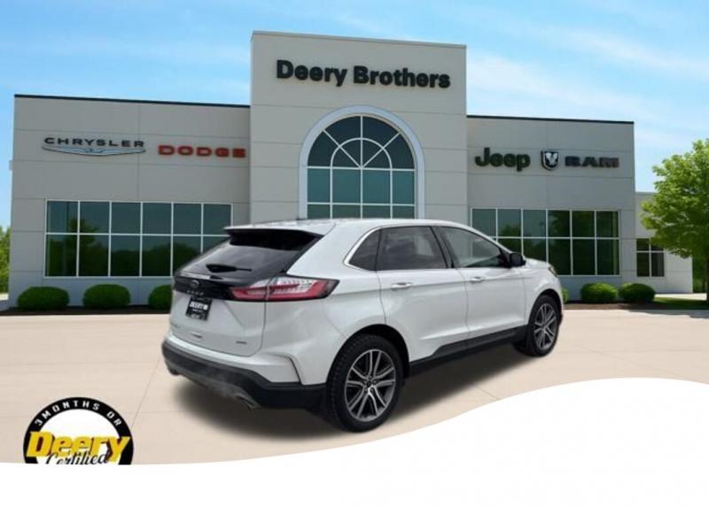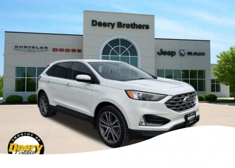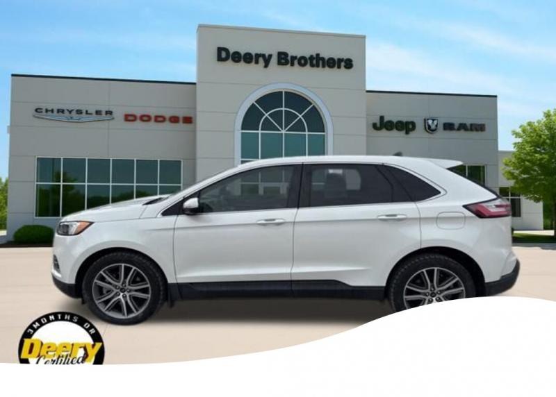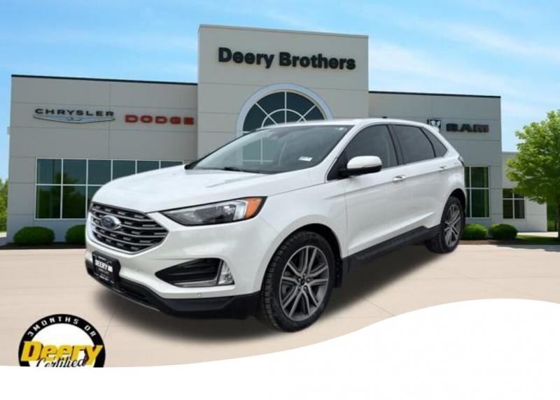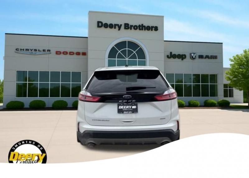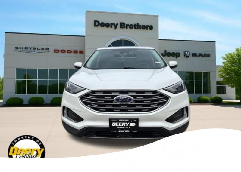 This Ford Edge Titanium has a One Owner Clean CARFAX and was traded in for a Certified Pre-Owned Dodge Durango! It is Deery Certified CLEAN CARFAX, ONE OWNER CARFAX, DEERY CERTIFIED, BACKUP CAMERA, REMOTE START, LEATHER SEATS, HEATED SEATS, HEATED STEERING WHEEL, LED HEADLIGHTS, REAR PARK SENSORS, 12 SPEAKER B O SOUND SYSTEM, FORD CO-PILOT360 ASSIST+, EVASIVE STEERING ASSIST, LANE CENTERING, POWER LIFTGATE. The Deery discount that you see includes a Dealer Trade In Assistance Bonus discount of $1,000. Trade in must be 2008 or newer with less than 200,000 miles, and have a clean title. Clean CARFAX. CARFAX One-Owner. Certified. Recent Arrival! Star White Metallic Tri-Coat 2023 Ford Edge Titanium 4D Sport Utility EcoBoost 2.0L I4 GTDi DOHC Turbocharged VCT 21/28 City/Highway MPG 8-Speed Automatic AWD Certification Program Details: DEERY CERTIFIED PRE-OWNED DETAILS: - $0 Deductible - 3 Months or 3,000 Miles (whichever comes first ) - Systems Covered: Gasoline/ Diesel Engine , Transmission , Drive Axle, Hybrid Components , Filters, Lubricants Taxes and Seals and Gaskets ** See Dealer for More Information. Serving Iowa City, Cedar Rapids, Waterloo, North Liberty, Davenport, Muscatine, Quad Cities, Des Moines, Keokuk, Mount Pleasant, Washington, and Dubuque. Don't miss out! Give us a call at [phone] to confirm availability and schedule a test-drive.