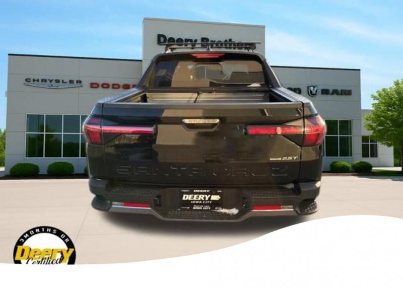 This Local Trade In, One Owner, Clean CARFAX was traded in for a brand new Jeep Wrangler! It is Deery Certified! CLEAN CARFAX, ONE OWNER CARFAX, LOCAL TRADE IN, DEERY CERTIFIED, AUTOMATIC EMERGENCY BRAKING, BLIND SPOT W. REAR CROSS TRAFFIC ALERT, LANE KEEP ASSIST, BACKUP CAMERA, APPLE CARPLAY/ANDROID AUTO, REMOTE START, LEATHER SEATS, HEATED SEATS, VENTILATED SEATS, NAVIGATION, SUNROOF, SURROUND VIEW CAMERA, 10.25' TOUCHSCREEN, BOSE PREMIUM SOUND SYSTEM, POWER DRIVER SEAT W. LUMBAR. The Deery discount that you see includes a Dealer Trade In Assistance Bonus discount of $1,000. Trade in must be 2008 or newer with less than 200,000 miles, and have a clean title. Certified. Certification Program Details: DEERY CERTIFIED PRE-OWNED DETAILS: - $0 Deductible - 3 Months or 3,000 Miles (whichever comes first ) - Systems Covered: Gasoline/ Diesel Engine , Transmission , Drive Axle, Hybrid Components , Filters, Lubricants Taxes and Seals and Gaskets ** See Dealer for More Information. Odometer is 10003 miles below market average! Recent Arrival! Phantom Black 2023 Hyundai Santa Cruz Limited 4D Crew Cab 2.5L I4 19/27 City/Highway MPG Shiftronic AWD Serving Iowa City, Cedar Rapids, Waterloo, North Liberty, Davenport, Muscatine, Quad Cities, Des Moines, Keokuk, Mount Pleasant, Washington, and Dubuque. Don't miss out! Give us a call at [phone] to confirm availability and schedule a test-drive.