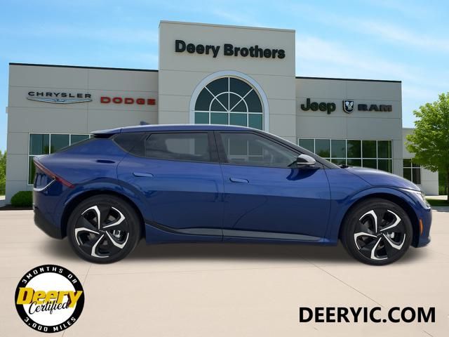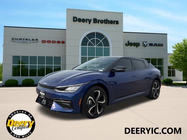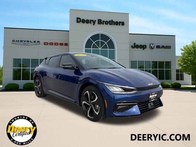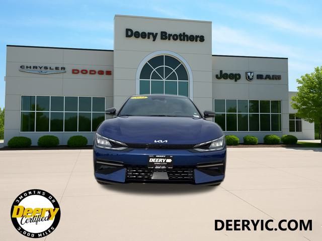 ** CLEAN CARFAX **, ** ONE OWNER CARFAX **, ** LOCAL TRADE IN **, ** WHOLESALE TO PUBLIC AS IS - NO WARRANTY**, ** Price includes $1,000 Deery Trade In Bonus**, GT-Line White Seat Package, Heads-Up Display, Heated front seats, Memory seat, Navigation system: AVN 5.0 Navigation System, Power driver seat, Power Liftgate, Power moonroof, Power passenger seat, Radio: Meridian Premium Audio System, Vegan Leatherette Seat Trim w/Suede Accents, Ventilated front seats, White Seat Color w/Black Accent. Odometer is 4608 miles below market average! Certified. Yacht Blue 2023 Kia EV6 GT-Line 4D Sport Utility Electric Motor 106/86 City/Highway MPG 1-Speed Automatic AWD Certification Program Details: DEERY CERTIFIED 3 MOS/ 3,000 MILES POWERTRAIN WARRANTY The Deery discount that you see includes a Dealer Trade In Assistance Bonus discount of $1,000. Trade in must be 2008 or newer with less than 200,000 miles, and have a clean title. Serving Iowa City, Cedar Rapids, Waterloo, North Liberty, Davenport, Muscatine, Quad Cities, Des Moines, Keokuk, Mount Pleasant, Washington, and Dubuque. Don't miss out! Give us a call at [phone] to confirm availability and schedule a test-drive.