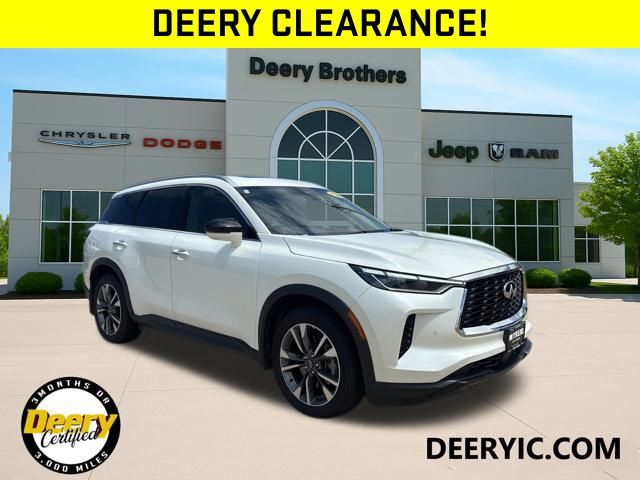 ** CLEAN CARFAX **, **DEERY CERTIFIED**, ** Price includes $1,000 Deery Trade In Bonus**, 3rd row seats: bench, Automatic temperature control, Exterior Parking Camera Rear, Heated front seats, Heated steering wheel, Leather-Appointed Seating Surfaces, Memory seat, Navigation system: INFINITI InTouch Navigation, Power driver seat, Power Liftgate, Power moonroof, Power passenger seat. Certified. White 2025 INFINITI QX60 LUXE 4D Sport Utility 2.0L I4 Turbocharged DOHC 16V LEV3-ULEV50 268hp 22/27 City/Highway MPG 9-Speed Automatic AWD Certification Program Details: DEERY CERTIFIED 3 MOS/ 3,000 MILES POWERTRAIN WARRANTY The Deery discount that you see includes a Dealer Trade In Assistance Bonus discount of $1,000. Trade in must be 2008 or newer with less than 200,000 miles, and have a clean title. Serving Iowa City, Cedar Rapids, Waterloo, North Liberty, Davenport, Muscatine, Quad Cities, Des Moines, Keokuk, Mount Pleasant, Washington, and Dubuque. Don't miss out! Give us a call at [phone] to confirm availability and schedule a test-drive.