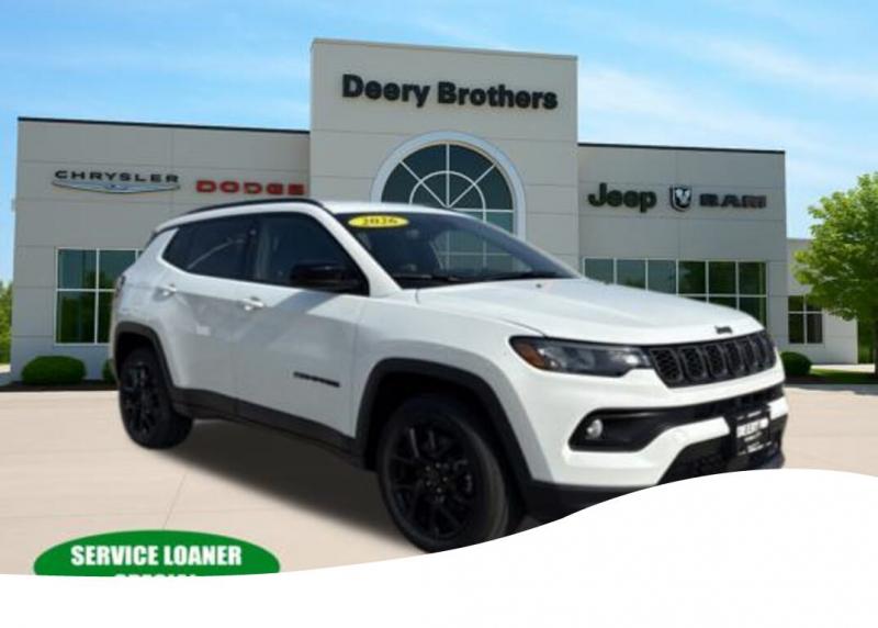 Quick Order Package 29N Altitude (10.1' Touchscreen Display, Altitude Special Edition, Black Day Light Opening Moldings, Gloss Black Surround/Neutral Gray Rings, Neutral Gray Exterior Badging, Piano Black Interior Accents, Sliding Sun Visors with Illuminated Mirrors, and Wheels: 18' x 7' Gloss Black Painted Aluminum), 17' x 7' Aluminum Wheels, 3.73 Final Drive Ratio, 4-Wheel Disc Brakes, 4G LTE Wi-Fi Hot Spot, 6 Speakers, ABS brakes, Air Conditioning, AM/FM radio: SiriusXM, Auto High-beam Headlights, Automatic temperature control, Bluetooth Handsfree Phone and Audio, Brake assist, Bumpers: body-color, Compass, Delay-off headlights, Driver door bin, Driver vanity mirror, Dual front impact airbags, Dual front side impact airbags, Electronic Stability Control, Emergency communication system: SiriusXM Guardian, Four wheel independent suspension, Front anti-roll bar, Front Bucket Seats, Front Center Armrest w/Storage, Front fog lights, Front License Plate Bracket, Front reading lights, Fully automatic headlights, Global Telematics Box Module, Heated front seats, Heated power door mirrors, Heated steering wheel, Illuminated entry, Knee airbag, Leather Shift Knob, Leather steering wheel, Low tire pressure warning, Manufacture Statement of Origin, MyFlexCare Service Plan, Occupant sensing airbag, Outside temperature display, Overhead airbag, Overhead console, Panic alarm, ParkView Rear Back-Up Camera, Passenger door bin, Passenger vanity mirror, Power door mirrors, Power steering, Power windows, Premium audio system: UConnect 5, Premium Cloth/Vinyl Bucket Seats, Radio: Uconnect 5 with 8.4' Display, Rear anti-roll bar, Rear seat center armrest, Rear window defroster, Rear window wiper, Remote keyless entry, Security system, SiriusXM Satellite Radio, Speed control, Split folding rear seat, Spoiler, Steering wheel mounted audio controls, Tachometer, Telescoping steering wheel, Tilt steering wheel, Traction control, Trip computer, and Variably intermittent wipers. Bright White Clearcoat 2026 Jeep Compass Latitude 4D Sport Utility 2.0L I4 DOHC 23/31 City/Highway MPG 8-Speed Automatic 4WD Serving Iowa City, Cedar Rapids, Waterloo, North Liberty, Davenport, Muscatine, Quad Cities, Des Moines, Keokuk, Mount Pleasant, Washington, and Dubuque. Don't miss out! Give us a call at [phone] to confirm availability and schedule a test-drive. Price does not include Taxes, Tags, License, Fees. Not all customers qualify for all rebates.$1000 - 2026 National Retail Bonus Cash . Exp. 03/02/2026 $1,000 Deery Trade In Bonus Cash. Must have a qualified trade in. See Dealer for details.