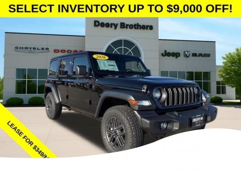 Convenience Group (2-Door Passive Entry, Front Door Locks, Air Conditioning with Auto Temp Control, Air Filtering, Cluster 7.0' TFT Color Display, Emergency/Assistance Call, Heated Front Rear Seats, Heated Steering Wheel, and Universal Garage Door Opener), Quick Order Package 22S Sport S (Advanced Brake Assist, Automatic Headlamps, Corning Gorilla Glass, Deep Tint Sunscreen Windows, Enhanced Adaptive Cruise Control, Full Speed Forward Collision Warning Plus, Power Heated Mirrors, Premium Wrapped Steering Wheel, Security Alarm, Sun Visors with Illuminated Vanity Mirrors, and Wheels: 17' x 7.5' Gray), Trailer Tow and Auxiliary Switch Group (7 and 4 Pin Wiring Harness, Auxiliary Switches, and Class II Receiver Hitch), 12.3' Touchscreen Display, 3.45 Overall Top Gear Ratio, 4-Wheel Disc Brakes, 4G LTE Wi-Fi Hot Spot, 8 Speakers, ABS brakes, Air Conditioning, AM/FM radio: SiriusXM with 360L, Apple CarPlay, Apple CarPlay/Android Auto, Aux Battery, Black 3-Piece Hard Top, Brake assist, Compass, Connectivity - US/Canada, Delay-off headlights, Driver door bin, Driver vanity mirror, Dual front impact airbags, Dual front side impact airbags, Electronic Stability Control, For More Info, Call [phone], Freedom Panel Storage Bag, Front anti-roll bar, Front Bucket Seats, Front Center Armrest w/Storage, Front fog lights, Front reading lights, Google Android Auto, Illuminated entry, Integrated Center Stack Radio, Integrated roll-over protection, Low tire pressure warning, Manufacture Statement of Origin, MOPAR All-Weather Floor Mats, Myflexcare Service Plan, No Soft Top, Non-Lock Fuel Cap Without Discriminator, Normal Duty Suspension, Occupant sensing airbag, Outside temperature display, Overhead airbag, Panic alarm, ParkView Rear Back-Up Camera, Passenger door bin, Passenger vanity mirror, Power steering, Power windows, Radio data system, Radio: Uconnect 5 with 12.3' Display, Rear anti-roll bar, Rear reading lights, Rear Window Defroster, Rear Window Wiper/Washer, Remote keyless entry, SiriusXM Radio Service, SiriusXM with 360L, Speed control, Split folding rear seat, Steering wheel mounted audio controls, Stop-Start Dual Battery System, Tachometer, Telescoping steering wheel, Tilt steering wheel, Traction control, Trip computer, Variably intermittent wipers, and Wheels: 17' x 7.5' Black Steel Styled. Black Clearcoat 2026 Jeep Wrangler Sport S 4D Sport Utility 2.0L I4 DOHC 20/22 City/Highway MPG 8-Speed Automatic 4WD Serving Iowa City, Cedar Rapids, Waterloo, North Liberty, Davenport, Muscatine, Quad Cities, Des Moines, Keokuk, Mount Pleasant, Washington, and Dubuque. Don't miss out! Give us a call at [phone] to confirm availability and schedule a test-drive. Price does not include Taxes, Tags, License, Fees. Not all customers qualify for all rebates.$1000 - 2026 National Stellantis Loyalty Bonus Cash . Exp. 03/02/2026 $1500 - 2026 National Select Inventory Bonus Cash . Exp. 01/04/2027 $2,000 Select Inventory Bonus Cash. May not be able to combine with other offers. Not all buyers will qualify. $1,000 Deery Trade In Bonus Cash. Must have a qualified trade in. See Dealer for details.