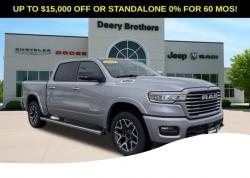 Bed Utility Group (Exterior 115V AC Outlet, MOPAR 4 Adjustable Cargo Tie-Down Hooks, and MOPAR Spray in Bedliner), Laramie Level 1 Equipment Group (Rain Sensitive Windshield Wipers and Remote Tailgate Release), Laramie Preferred Package (Accent Color Premium Power Mirrors, Auto Power-Folding Mirrors, Auto-Dimming Exterior Driver Mirror, Black Painted Exterior Mirrors Caps, Body Color Front Bumper, Body Color Rear Bumper with Step Pads, Convex Wide-Angle Exterior Mirror Insert, Dome Dual LED Reading Lamp, Dual-Pane Panoramic Sunroof, Exterior Mirrors Courtesy Lamps, Exterior Mirrors with Heating Element, Exterior Mirrors with Memory, Exterior Mirrors with Supplemental Signals, Grille Surround 3 Body Color Tex 4 Chrome, LED Dome/Reading Lamp, Power Deployable Running Boards, RAM Grille Badge - Chrome, Tow Hooks, and Trailer Brake Control), Quick Order Package 21H Laramie, 10 Speakers, 3.55 Rear Axle Ratio, 4-Wheel Disc Brakes, 4G LTE Wi-Fi Hot Spot, ABS brakes, Active Noise Control System, Air Conditioning, Alloy wheels, AM/FM radio: SiriusXM with 360L, Apple CarPlay/Android Auto, Audio memory, Auto High-beam Headlights, Auto-dimming door mirrors, Auto-dimming Rear-View mirror, Automatic temperature control, Brake assist, Bumpers: chrome, Chrome Exterior Mirrors, Compass, Connected Travel and Traffic Services, Connectivity - US/Canada, Delay-off headlights, Driver door bin, Driver vanity mirror, Dual front impact airbags, Dual front side impact airbags, Electronic Stability Control, Front anti-roll bar, Front Bucket Seats, Front Center Armrest w/Storage, Front dual zone A/C, Front fog lights, Front License Plate Bracket, Front reading lights, Front wheel independent suspension, Fully automatic headlights, Garage door transmitter, GPS Navigation, Heated front seats, Heated power door mirrors, Heated rear seats, Heated steering wheel, Illuminated entry, Integrated Center Stack Radio, Integrated Voice Command with Bluetooth, Leather steering wheel, Leather Trimmed Bucket Seats, Low tire pressure warning, Manufacturer's Statement of Origin, Memory seat, MOPAR Front and Rear Rubber Floor Mats, MyFlexCare Service Plan, Navigation System, Occupant sensing airbag, Off-Road Information Pages, Outside temperature display, Overhead airbag, Overhead console, Panic alarm, ParkView Rear Back-Up Camera, Passenger door bin, Passenger vanity mirror, Power door mirrors, Power driver seat, Power passenger seat, Power steering, Power windows, Radio data system, Radio: Uconnect 5 Navigation with 12.0' Display, Rear anti-roll bar, Rear reading lights, Rear seat center armrest, Rear step bumper, Remote keyless entry, Security system, SiriusXM Radio Service, SiriusXM with 360L, Speed control, Split folding rear seat, Steering wheel mounted audio controls, Tachometer, Telescoping steering wheel, Tilt steering wheel, Traction control, Trip computer, Turn signal indicator mirrors, USB Host Flip, Variably intermittent wipers, Ventilated front seats, Voltmeter, Wheel to Wheel Side Steps, and Wheels: 20' x 9' Premium Paint/Polish. Billet Silver Metallic Clearcoat 2026 Ram 1500 Laramie 4D Crew Cab 3.0L I6 18/24 City/Highway MPG 8-Speed Automatic 4WD Price does not include Taxes, Tags, License, Fees. Not all customers qualify for all rebates.$1000 - 2026 National Bonus Cash . Exp. 03/02/2026 $2000 - 2026 Midwest BC Conquest Bonus Cash . Exp. 03/02/2026 $3500 - 2026 National Retail Consumer Cash . Exp. 03/02/2026 $1,000 Deery Trade In Bonus Cash. Must have a qualified trade in. See Dealer for details.