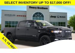 Bed Utility Group (Exterior 115V AC Outlet, MOPAR 4 Adjustable Cargo Tie-Down Hooks, and MOPAR Spray in Bedliner), Laramie Level 2 Equipment Group (14.4' Touchscreen Display, 4G LTE Wi-Fi Hot Spot, Cluster 12' TFT Color Display, Connected Travel and Traffic Services, Connectivity - US/Canada, Front Passenger Interactive Display, GPS Navigation, Harman/Kardon 19 Speaker Premium Sound, Integrated Center Stack Radio, Integrated Voice Command with Bluetooth, Power Tailgate, Radio: Uconnect 5 Nav with 14.4' Display, Rain Sensitive Windshield Wipers, SiriusXM Radio Service, SiriusXM with 360L, and USB Host Flip), Laramie Preferred Package (Accent Color Premium Power Mirrors, Auto Power-Folding Mirrors, Auto-Dimming Exterior Driver Mirror, Black Painted Exterior Mirrors Caps, Body Color Front Bumper, Body Color Rear Bumper with Step Pads, Convex Wide-Angle Exterior Mirror Insert, Dome Dual LED Reading Lamp, Dual-Pane Panoramic Sunroof, Exterior Mirrors Courtesy Lamps, Exterior Mirrors with Heating Element, Exterior Mirrors with Memory, Exterior Mirrors with Supplemental Signals, Grille Surround 3 Body Color Tex 4 Chrome, LED Dome/Reading Lamp, Power Deployable Running Boards, RAM Grille Badge - Chrome, Tow Hooks, and Trailer Brake Control), Quick Order Package 27H Laramie, 10 Speakers, 4-Wheel Disc Brakes, ABS brakes, Active Noise Control System, Adjustable pedals, Air Conditioning, Alloy wheels, AM/FM radio: SiriusXM with 360L, Anti-Spin Differential Rear Axle, Apple CarPlay/Android Auto, Audio memory, Auto High-beam Headlights, Auto-dimming door mirrors, Auto-dimming Rear-View mirror, Automatic temperature control, Brake assist, Bumpers: chrome, Chrome Exterior Mirrors, Compass, Delay-off headlights, Driver door bin, Driver vanity mirror, Dual front impact airbags, Dual front side impact airbags, Electronic Stability Control, Front anti-roll bar, Front Bucket Seats, Front Center Armrest w/Storage, Front dual zone A/C, Front fog lights, Front License Plate Bracket, Front reading lights, Front wheel independent suspension, Fully automatic headlights, Garage door transmitter, Heated front seats, Heated power door mirrors, Heated rear seats, Heated steering wheel, Illuminated entry, Leather steering wheel, Leather Trimmed Bucket Seats, Low tire pressure warning, Manufacturer's Statement of Origin, Memory seat, MOPAR Front and Rear Rubber Floor Mats, MyFlexCare Service Plan, Navigation System, Occupant sensing airbag, Off-Road Information Pages, Outside temperature display, Overhead airbag, Overhead console, Panic alarm, ParkView Rear Back-Up Camera, Passenger door bin, Passenger vanity mirror, Pedal memory, Pirelli Brand Tires, Power door mirrors, Power driver seat, Power passenger seat, Power steering, Power windows, Radio data system, Radio: Uconnect 5 Navigation with 12.0' Display, Rear anti-roll bar, Rear reading lights, Rear seat center armrest, Rear step bumper, Remote keyless entry, Security system, Speed control, Split folding rear seat, Steering wheel mounted audio controls, Tachometer, Telescoping steering wheel, Tilt steering wheel, Traction control, Trip computer, Turn signal indicator mirrors, Variably intermittent wipers, Ventilated front seats, Voltmeter, Wheels: 20' x 9' Premium Paint/Polish, and Wheels: 22' x 9' Forged Aluminum. Diamond Black Crystal Pearlcoat 2026 Ram 1500 Laramie 4D Crew Cab HEMI 5.7L V8 Multi Displacement VVT eTorque 16/20 City/Highway MPG 8-Speed Automatic 4WD Price does not include Taxes, Tags, License, Fees. Not all customers qualify for all rebates.$1000 - 2026 National Bonus Cash . Exp. 03/02/2026 $2000 - 2026 Midwest BC Conquest Bonus Cash . Exp. 03/02/2026 $2000 - 2026 National Select Inventory Bonus Cash. Exp. 03/02/2026 $3500 - 2026 National Retail Consumer Cash . Exp. 03/02/2026 $1,000 Deery Trade In Bonus Cash. Must have a qualified trade in. See Dealer for details.