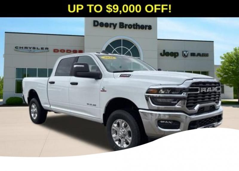 Bed Utility Group (MOPAR Deployable Bed Step and MOPAR Spray in Bedliner), Big Horn Level 2 Equipment Group, Cold Weather Group (Engine Block Heater and MOPAR Winter Front Grille Cover), Quick Order Package 24Z Big Horn, 3.73 Axle Ratio, 4-Wheel Disc Brakes, 40/20/40 Split Bench Seat, 6 Speakers, ABS brakes, Air Conditioning, Alloy wheels, AM/FM radio: SiriusXM, Apple CarPlay/Android Auto, Brake assist, Bumpers: chrome, Center Hub, Cloth 40/20/40 Bench Seat, Compass, Delay-off headlights, Driver door bin, Dual front impact airbags, Dual front side impact airbags, Electronic Stability Control, Front anti-roll bar, Front Center Armrest w/Storage, Front fog lights, Front reading lights, Fully automatic headlights, Heated power door mirrors, Illuminated entry, Low tire pressure warning, Manual Adjust 4-Way Driver Seat, Occupant sensing airbag, Outside temperature display, Overhead airbag, Overhead console, Panic alarm, ParkView Rear Back-Up Camera, Passenger door bin, Passenger vanity mirror, Power door mirrors, Power steering, Power windows, Radio data system, Rear anti-roll bar, Rear Folding Seat, Rear seat center armrest, Rear step bumper, Rear window defroster, Remote keyless entry, Remote USB Port - Charge Only, Security system, Speed control, Storage Tray, Tachometer, Tilt steering wheel, Traction control, Trip computer, Turn signal indicator mirrors, Variably intermittent wipers, Voltmeter, and Wheels: 18' x 8.0' Polished Aluminum. Bright White Clearcoat 2026 Ram 2500 Big Horn 4D Crew Cab 6.7L I6 8-Speed Automatic 4WD Price does not include Taxes, Tags, License, Fees. Not all customers qualify for all rebates.$1000 - 2026 National Bonus Cash . Exp. 03/02/2026 $1,000 Deery Trade In Bonus Cash. Must have a qualified trade in. See Dealer for details.