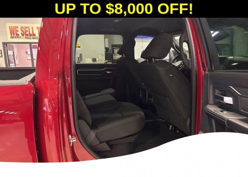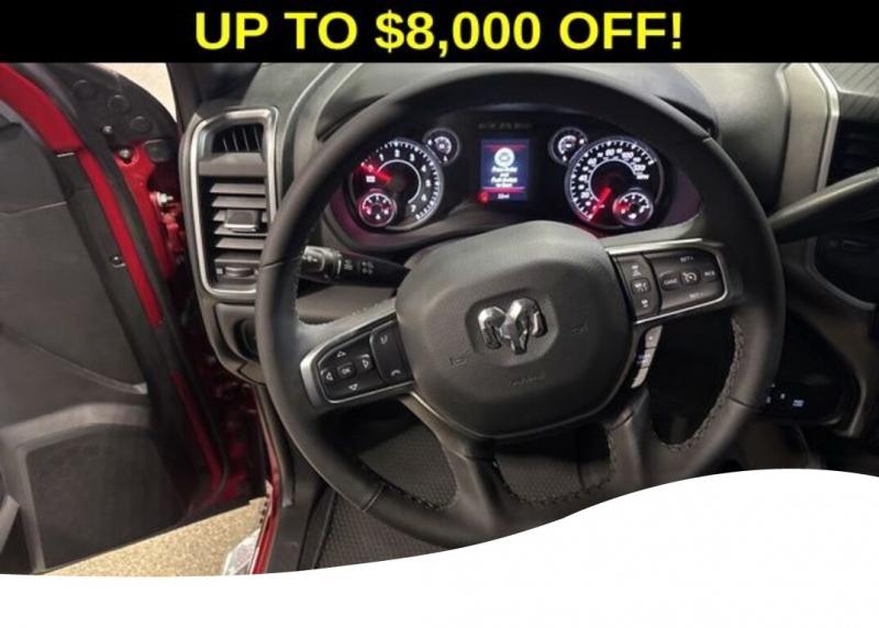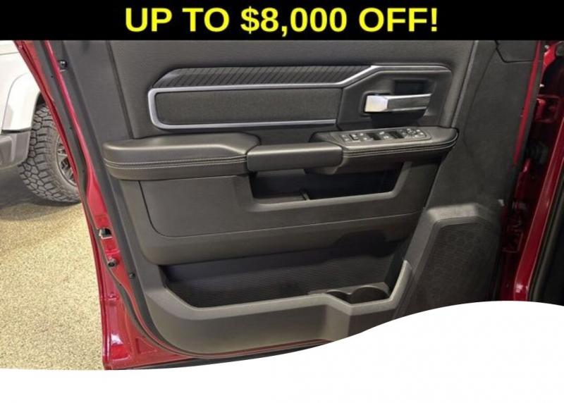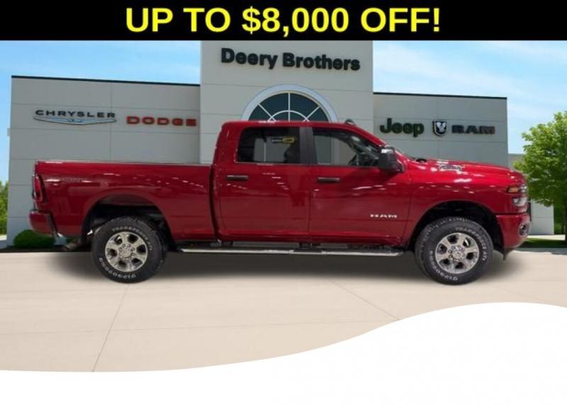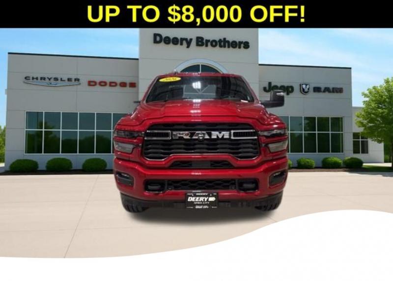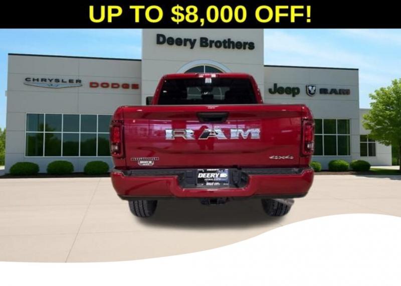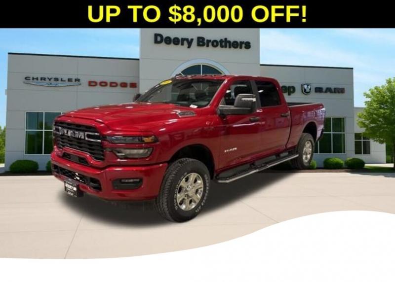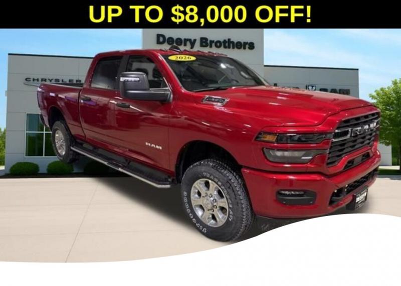 Big Horn Level 1 Plus Equipment Group (12' Touchscreen Display, 2 Way Rear Headrest Seat, 2nd Row in Floor Storage Bins, 4 Way Front Headrests, 40/20/40 Split Bench Seat, 4G LTE Wi-Fi Hot Spot, 9 Alpine Speakers with Subwoofer, Air Conditioning ATC with Dual Zone Control, Alexa Built-in, Anti-Spin Differential Rear Axle, Apple CarPlay, Auto Power-Folding Mirrors, Auto-Dimming Rear-View Mirror, Black Exterior Mirrors, Connected Travel and Traffic Services, Connectivity - US/Canada, Disassociated Touchscreen Display, Dual Glove Boxes, Emergency Vehicle Alert System (EVAS), Exterior Mirrors Courtesy Lamps, Exterior Mirrors with Heating Element, Exterior Mirrors with Supplemental Signals, Foam Bottle Insert (door Trim Panel), Folding Flat Load Floor Storage, Footwell Courtesy Lamp, For Details, Visit [link] For More Info, Call [phone], Forward and Reverse Utility Lights, Front Armrest with Cupholders, Front Center Seat Cushion Storage, Front Seat Back Map Pockets, Global Telematics Box Module, Glove Box Lamp, Google Android Auto, GPS Antenna Input, GPS Navigation, HD Radio, Integrated Voice Command with Bluetooth, LED Bed Lighting, Locking Lower Glove Box, Luxury Steering Wheel, Manual Adjust 4-Way Front Passenger Seat, Mirror Running Lights, MOPAR Deployable Bed Step, MOPAR Spray in Bedliner, Off-Road Info Pages, Power 2-Way Driver Lumbar Adjust, Power Adjust 8-Way Driver Seat, Power Adjust Mirrors, Power Heated Folding Telescopic Mirrors, Power Telescoping Mirrors, Power-Adjustable Convex Aux Mirrors, Premium Cloth 40/20/40 Bench Seat, Radio: Uconnect 5 Navigation with 12.0' Display, Rear 60/40 Folding Seat, Rear Dome with on/Off Switch Lamp, Remote Start System, Remote USB Port - Charge Only, Selectable Tire Fill Alert, SiriusXM Radio Service, SiriusXM with 360L, Steering Wheel Mounted Audio Controls, Storage Tray, and Trailer Tow Pages), Heated Seats and Wheel Group (Heated Front Rear Seats and Heated Steering Wheel), Quick Order Package 2UZ Big Horn, Sport Appearance Package (Black Interior Accents, Body Color Grille-Surround, Painted Front Bumper, Painted Rear Bumper, and Sport Decal), 3.73 Axle Ratio, 4-Wheel Disc Brakes, 6 Speakers, ABS brakes, Air Conditioning, Alloy wheels, AM/FM radio: SiriusXM, Apple CarPlay/Android Auto, Brake assist, Bumpers: chrome, Center Hub, Chrome Flat Wheel-to-Wheel Side Steps, Clearance Lamps, Cloth 40/20/40 Bench Seat, Compass, Dash Pass Thru Wire Circuits, Delay-off headlights, Driver door bin, Dual front impact airbags, Dual front side impact airbags, Electronic Stability Control, Front anti-roll bar, Front Center Armrest w/Storage, Front fog lights, Front License Plate Bracket, Front reading lights, Fully automatic headlights, Heated power door mirrors, Illuminated entry, Instrument Panel Mounted Auxiliary Switches, Low tire pressure warning, Manual Adjust 4-Way Driver Seat, Manufacturer's Statement of Origin, MyFlexCare Service Plan, Occupant sensing airbag, Outside temperature display, Overhead airbag, Overhead console, Panic alarm, ParkView Rear Back-Up Camera, Passenger door bin, Passenger vanity mirror, Power door mirrors, Power steering, Power windows, Radio data system, Radio: Uconnect 5 with 8.4' Display, Rear anti-roll bar, Rear Folding Seat, Rear seat center armrest, Rear step bumper, Rear window defroster, Remote keyless entry, Security system, Speed control, Tachometer, Tilt steering wheel, Traction control, Trip computer, Turn signal indicator mirrors, Variably intermittent wipers, Voltmeter, and Wheels: 18' x 8.0' Polished AluminuM. Molten Red Pearlcoat 2026 Ram 2500 Big Horn 4D Crew Cab 6.4L V8 8-Speed Automatic 4WD Price does not include Taxes, Tags, License, Fees. Not all customers qualify for all rebates.$1000 - 2026 National Bonus Cash . Exp. 03/02/2026 $1,000 Deery Trade In Bonus Cash. Must have a qualified trade in. See Dealer for details.