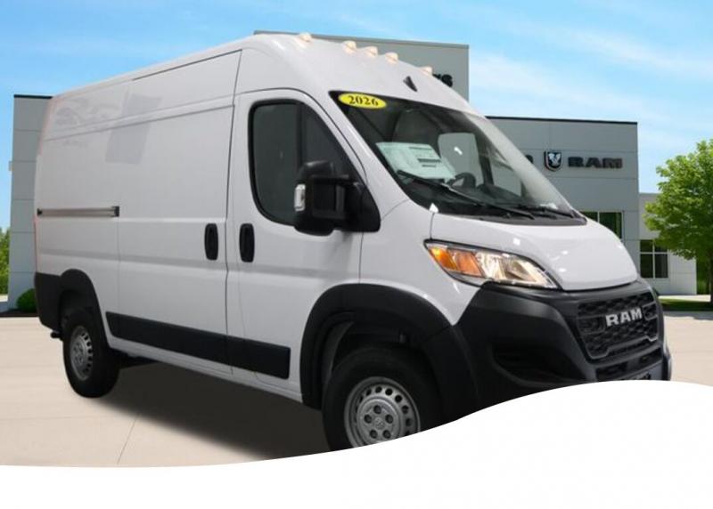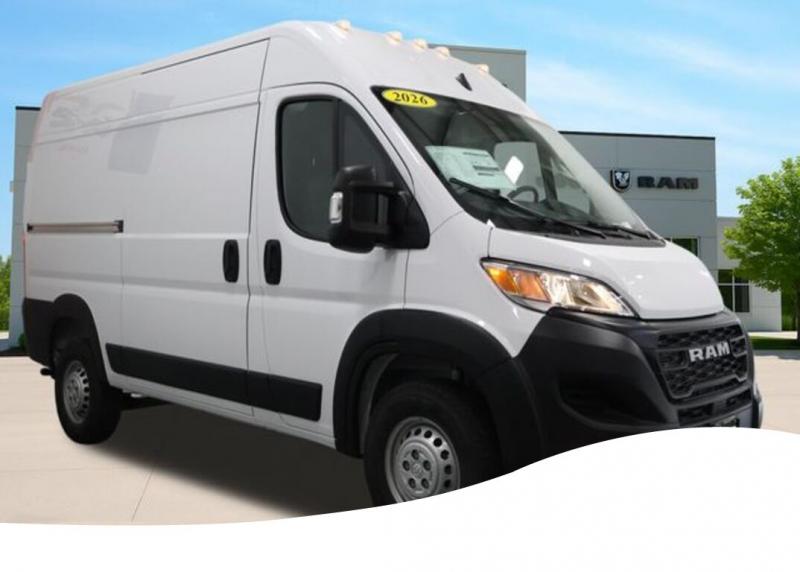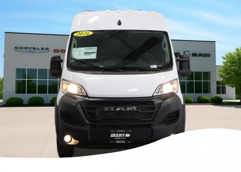 Convenience Group (Exterior Mirrors with Heating Element, Exterior Mirrors with Supplemental Signals, Front Fog Lamps, Power Adjust Mirrors, Power Folding/Heated Mirrors, Power-Adjustable Convex Aux Mirrors, Power-Folding Mirrors, and Rear Cargo LED Lamp), Quick Order Package 22B Tradesman (4-Way Manual Adjust Front Passenger Seat and Passenger Bucket Seat), 4 Speakers, 4-Wheel Disc Brakes, 4.08 Axle Ratio, 4G LTE Wi-Fi Hotspot, ABS brakes, Adaptive Cruise Control with Stop and Go, Air Conditioning, AM/FM radio: SiriusXM, Apple CarPlay, Apple CarPlay/Android Auto, Black/Gray Seats, Bodyside moldings, Brake assist, Cargo Storage Headliner, Cloth Bucket Seats, Connectivity - US/Canada, Driver door bin, Driver Seat Armrest, Driver's Seat Mounted Armrest, Electronic Stability Control, For Details, Visit [link] For More Info, Call [phone], Front anti-roll bar, Front Bucket Seats, Front License Plate Bracket, Front reading lights, Front wheel independent suspension, Global Telematics Box Module, Google Android Auto, GPS Antenna Input, Illuminated entry, Integrated Center Stack Radio, Low tire pressure warning, Manufacturer's Statement of Origin, Medium Duty Suspension, MOPAR Cargo Compartment Floor Mat, MOPAR Rear Bumper Step Extension, MyFlexCare Service Plan, Outside temperature display, Overhead airbag, Overhead console, ParkSense Rear Park Assist System, ParkView Rear Back-Up Camera, Passenger door bin, Power steering, Power windows, Radio: Uconnect 5 with 7' Display, Remote keyless entry, Remote Start System, SiriusXM Radio Service, Steering wheel mounted audio controls, Tachometer, Telescoping steering wheel, Traction control, Trip computer, Turn signal indicator mirrors, Variably intermittent wipers, Wheel Center Cap, and Wheels: 16' x 6.0' SteeL. Bright White Clearcoat 2026 Ram ProMaster 1500 Base 3D Cargo Van 3.6L V6 24V VVT 9-Speed Automatic FWD Price does not include Taxes, Tags, License, Fees. Not all customers qualify for all rebates.$4000 - 2026 National Bonus Cash . Exp. 04/30/2026 $1,000 Deery Trade In Bonus Cash. Must have a qualified trade in. See Dealer for details. 2026 On-The-Job $1000 Commercial Equipment/Upfit. May not be able to combine with other offers. Not everybody will qualify. See dealer for details.
