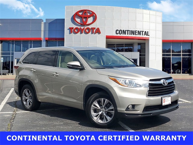 Recent Arrival! 2015 Used Toyota Highlander XLE V6 Gold Toyota Silver Certified Details: * SILVER CERTIFIED Eligibility: Vehicles up to 10 Model Years Old & Between 60,000-125,000 Miles on Odometer; Outside Gold Eligibility Parameters, Limited Powertrain Warranty: 12-Month/12,000-Mile(2), 24-Hour Roadside Assistance: 12-Month/12,000-Mile(3), Extended Warranty Coverage (items 2 and 3 above) Transferable at No Cost For Added Resale Value, Quality Assurance Inspection: 136-Point Minimum, Free CARFAX Vehicle History Report, Warranty Honored at Over 1,400 Toyota Dealers in the Continental U.S. and Canada, Trade-Ins Accepted, Trouble-free Handling of Your Transaction; Including DMV PaperworkAccessories: FE 50 State Emissions****MECHANICAL & PERFORMANCE3.5L DOHC V6 Engine with Dual VVT-i 6-Spd Auto Trans; 5,000-lb Tow Capacity Front Independent McPherson Strut & Rear Double Wishbone Suspension Ultra Low Emission Vehicle II (ULEV-II) Power Assisted 4-Wheel Disc Brakes 18" Alloy Wheels with P245/60R18 Tires Temporary Spare Tire on 18" Wheel Hill-Start Assist Control****SAFETY & CONVENIENCEStar Safety System: incl Enhanced Veh Stability Ctrl, Traction Ctrl, Anti-Lock Brake System, Elec Brake-Force Distrib, Brake Assist & Smart Stop Technology 8 Airbags: Dr & Fr Pgr Adv Airbag Sys,Dr & Fr Pgr Seat-Mounted Side, Dr Knee, Pgr & Fr Pgr Seat-Mounted Side, Dr Knee, Pgr Seat-Cushion & 3-Rw Side Curtain Airbags Whiplash Injury Lessening Front Seats Smart Key; Alarm & Engine Immobilizer LATCH-Lwr Anchors & Tethers for Children Child Protector Rear Door Locks****EXTERIORSmokdChrome Auto On/Off Hdlghts;FogLghts UV Windshield; Priv Glass-Rr Side, Qtr & Hatch Wndws,Folding Htd Pwr Side Mirrors Chromtec Roof Rails; Fr Wiper w/De-Icer Adj Power Liftgate w/Flip-Up Rear Window Power Tilt/Slide Moonroof with Sunshade****INTERIORSeating for 8; Lthr Htd Fr Seats, 8-way Pwr Dr w/Lumbar, 4-way Psgr, 2nd & 3rd Rw 60/40 Split Fold-Flat Seats w/Recline Backup Camera with 8" Display Entune Prem w/8" Touch Screen:Nav, AM/FM CD/MP3/USB/AUX,HD,& SXM All Access 3-mo Trial, Bluetooth Phone/Music, App Suite 4.2" Color Nav-linked Multi-Info Display Homelink; 3-Zone Auto A/C; Lthr Steering Whl w/Aud, Phn & VRec Ctrls, Conv Mirror 8 Cup/4 Btl Hldrs; 3-12V & 1-120V Outlet Roll-Top Console/Arm Rest, In-Dash ShelfFounded in 1961 by John and Herman Weinberger, Continental Motors began its existence as an import repair shop in Lyons, IL. The Weinberger's reputation for excellent service spread quickly among sports car enthusiasts, and it wasn't long before the two brothers were approached by triumph to open a new car dealership in 1962.Awards: * 2015 IIHS Top Safety Pick+ * ALG Residual Value Awards, Residual Value Awards * 2015 [link] 10 Best Certified Pre-Owned 3-Row SUVs Under $30,000 * 2015 [link] 15 Best Family Cars * 2015 [link] Best Buy Awards Reviews: * The 2015 Toyota Highlander is a safe choice, for all the right reasons. Comfortable, accommodating and feature-packed, with a variety of models for all budgets, the Highlander's a tough act to follow. Source: [link] * Refined interior appointments; quiet, compliant ride; smooth and strong V6 engine; seating for up to eight; fresh technology offerings. Source: Edmunds