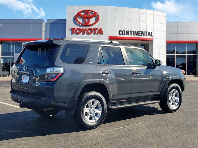 Recent Arrival! 2024 Toyota 4Runner SR5 Underground 4WD, Black/Graphite w/Fabric Seat Trim. Certified. Toyota Gold Certified Details:Accessories50 State EmissionsRunning Boards****MECHANICAL & PERFORMANCE4.0L DOHC 24-Valve V6 w/Dual Independent VVT-i; 270HP / 278 Lb.-Ft. Torque 5-Speed Auto Transmission w/ECT-i Hill-Start and Downhill Assist Control Tow Hitch Receiver w/7 & 4-Pin Connector Part-Time 4WD System with Active TRAC****SAFETY & CONVENIENCEToyota Safety Sense P: Pre-Collision Sys w/Pedestrian Detection, Dynamic Radar Cruise Control, Lane Departure Alert, Automatic High Beams Star Safety System Blind Spot Monitor w/Rear Cross Traffic Alert Connected Services Capable, 4G network dependent, See [link] for details****EXTERIORPower Sliding Rear Window Front Skid Plates 17-in Alloy Wheels Full Size Spare Tire****INTERIORAudio: 8-in Touchscreen w/8 Speakers, Apple CarPlay & Android Compatible SiriusXM w/3-Month Platinum Plan Trial Smart Key System w/Push Button Start Fabric-Trimmed Seats Split, Recline, Fold Flat 2nd-Row Power Driver Seat * 160 Point Inspection * Vehicle History * Warranty Deductible: $0 * Limited Warranty: 12 Month/12,000 Mile Limited Comprehensive Warranty: 12 Month/12,000 Mile (whichever comes first) from certified purchase date * Roadside Assistance for 7 Year / 100,000 Mile. Standard New-Car Financing Rates Available. Warranty honored at over 1,400 Toyota dealers in the continental U.S. & Canada. Trade-ins accepted. Trouble-free handling of your transaction, including DMV paperwork * Transferable Warranty * Roadside Assistance * Powertrain Limited Warranty: 84 Month/100,000 Mile (whichever comes first) from TCUV purchase dateFounded in 1961 by John and Herman Weinberger, Continental Motors began its existence as an import repair shop in Lyons, IL. The Weinberger's reputation for excellent service spread quickly among sports car enthusiasts, and it wasn't long before the two brothers were approached by triumph to open a new car dealership in 1962.