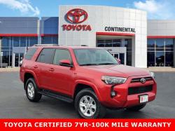 Recent Arrival! 2024 Use Toyota 4Runner SR5 Red 4WD, Black Cloth. Toyota Gold Certified Details: * Powertrain Limited Warranty: 84 Month/100,000 Mile (whichever comes first) from TCUV purchase date * Limited Warranty: 12 Month/12,000 Mile Limited Comprehensive Warranty: 12 Month/12,000 Mile (whichever comes first) from certified purchase date * Roadside Assistance * Roadside Assistance for 7 Year / 100,000 Mile. Standard New-Car Financing Rates Available. Warranty honored at over 1,400 Toyota dealers in the continental U.S. & Canada. Trade-ins accepted. Trouble-free handling of your transaction, including DMV paperwork * Vehicle History * 160 Point Inspection * Warranty Deductible: $0 * Transferable WarrantyOdometer is 3384 miles below market average!Accessories: FE 50 State Emissions RB Running Boards****MECHANICAL & PERFORMANCE4.0L DOHC 24-Valve V6 w/Dual Independent VVT-i; 270HP / 278 Lb.-Ft. Torque 5-Speed Auto Transmission w/ECT-i Hill-Start and Downhill Assist Control Tow Hitch Receiver w/7 & 4-Pin Connector Part-Time 4WD System with Active TRAC****SAFETY & CONVENIENCEToyota Safety Sense P: Pre-Collision Sys w/Pedestrian Detection, Dynamic Radar Cruise Control, Lane Departure Alert, Automatic High Beams Star Safety System Blind Spot Monitor w/Rear Cross Traffic Alert Connected Services Capable, 4G network dependent, See [link] for details****EXTERIORPower Sliding Rear Window Front Skid Plates 17-in Alloy Wheels Full Size Spare Tire****INTERIORAudio: 8-in Touchscreen w/8 Speakers, Apple CarPlay & Android Compatible SiriusXM w/3-Month Platinum Plan Trial Smart Key System w/Push Button Start Fabric-Trimmed Seats Split, Recline, Fold Flat 2nd-Row Power Driver Seat Founded in 1961 by John and Herman Weinberger, Continental Motors began its existence as an import repair shop in Lyons, IL. The Weinberger's reputation for excellent service spread quickly among sports car enthusiasts, and it wasn't long before the two brothers were approached by triumph to open a new car dealership in 1962.