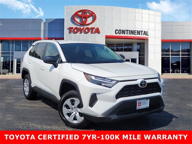 Recent Arrival! 2025 Used Toyota RAV4 LE Ice Cap AWD, Black w/Fabric Seat Trim. Toyota Gold Certified Details: * Transferable Warranty * Roadside Assistance * 160 Point Inspection * Vehicle History * Roadside Assistance for 7 Year / 100,000 Mile. Standard New-Car Financing Rates Available. Warranty honored at over 1,400 Toyota dealers in the continental U.S. & Canada. Trade-ins accepted. Trouble-free handling of your transaction, including DMV paperwork * Limited Warranty: 12 Month/12,000 Mile Limited Comprehensive Warranty: 12 Month/12,000 Mile (whichever comes first) from certified purchase date * Warranty Deductible: $0 * Powertrain Limited Warranty: 84 Month/100,000 Mile (whichever comes first) from TCUV purchase date27/34 City/Highway MPGAccessories: FE 50 State Emissions****MECHANICAL & PERFORMANCE2.5L 4-Cylinder Engine w/ Start-Stop 203 hp @ 6600 rpm / 184 lb-ft @ 5000 rpm 8-Speed Automatic Transmission All-Wheel Drive w/ Multi-Terrain Select****SAFETY & CONVENIENCEToyota Safety Sense 2.5 w/ Pre-Collision 8 Airbags; Star Safety System Connected Services Capable. 4G Network Dependent. See [link] For Details. LATCH-Lower Anchor & Tether For CHildren Backup Camera w/ Dynamic Gridlines****EXTERIORLED Projector Headlights LED Daytime Running Lights 17-in. Steel Wheels w/ Covers****INTERIOR8-in. Toyota Audio Multimedia w/ 6-Speakers, Wireless Apple CarPlay & Android Auto Compatibility SiriusXM w/ 3-Month Trial 3 USB Ports Fabric-Trimmed Seats Remote Keyless Entry Rear Air Vents Founded in 1961 by John and Herman Weinberger, Continental Motors began its existence as an import repair shop in Lyons, IL. The Weinberger's reputation for excellent service spread quickly among sports car enthusiasts, and it wasn't long before the two brothers were approached by triumph to open a new car dealership in 1962.