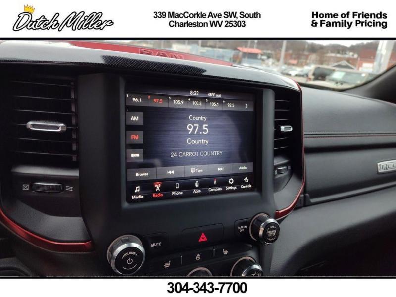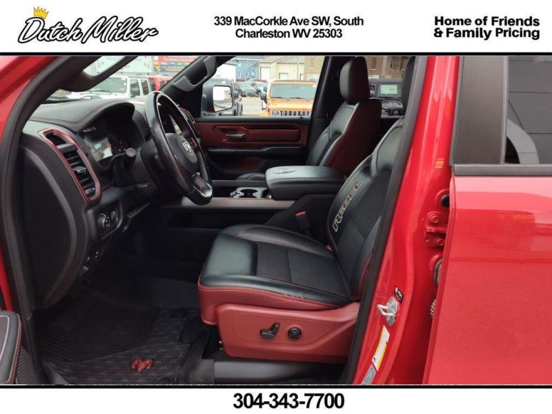 Vehicle Details2021 Ram 1500 Rebel 4WD -- powerful V8, 5.7L gasoline engine -- ready to roam from South Charleston, WV. This rugged Rebel blends aggressive styling with refined comfort, delivering the capability you need for work, weekend adventures, and everything in between. Four-wheel drive and the legendary 5.7L HEMI V8 provide confident towing and effortless highway passing, while performance-tuned suspension and distinctive Rebel finishes make this pickup turn heads wherever you go. Inside, modern connectivity keeps you linked and in control. Android Auto and Hands Free Bluetooth let you stream music, navigate, and take calls safely. The Back-Up Camera and Rear Parking Sensors add convenience and confidence when maneuvering in tight spots. On cooler mornings, the Heated Steering Wheel provides immediate comfort, extending the premium feel of this rugged truck. This 2021 Ram 1500 Rebel offers a rare mix of off-road-ready capability and everyday usability at the best price in the South Charleston, WV area. Whether you're hauling gear, towing a trailer, or cruising the open road, this Rebel delivers power, tech, and comfort without compromise. Don't miss a chance to own a top-performing V8 truck with sought-after features and competitive pricing. Contact us to schedule a test drive in South Charleston and experience the Rebel's performance and value firsthand.EquipmentBluetooth technology is built into it, keeping your hands on the steering wheel and your focus on the road. Apple CarPlay: Seamless smartphone integration for this 1/2 ton pickup - stay connected and entertained on the go! This unit offers Android Auto for seamless smartphone integration. The state of the art park assist system will guide you easily into any spot. This Ram 1500 keeps you comfortable with Auto Climate. The vehicle's Forward Collision Warning system alerts the driver to potential front-end collisions, enhancing safety. The vehicle has a clean CARFAX vehicle history report. This 1/2 ton pickup is pure luxury with a heated steering wheel. Protect it from unwanted accidents with a cutting edge backup camera system. This model has four wheel drive capabilities. Set the temperature exactly where you are most comfortable in this Ram 1500. The fan speed and temperature will automatically adjust to maintain your preferred zone climate.PackagesQuick Order Package 27W Rebel. Rebel Level 1 Equipment Group: Uconnect 4 Radio with 8.4"" Display; Rear Window Defroster; Power Adjustable Pedals; Exterior Mirrors with Supplemental Signals; Rear Dome with On/off Switch Lamp; Exterior Mirrors Courtesy Lamps; Auto Dim Exterior Driver Mirror; Universal Garage Door Opener; Heated Front Seats; Heated Steering Wheel; Power-Folding Mirrors; Foam Bottle Insert (door Trim Panel); Black Premium Power Mirrors; Sun Visors with Illuminated Vanity Mirrors. **Equipment listed is based on original vehicle build and subject to change. Please confirm the accuracy of the included equipment by calling the dealer prior to purchase.**Additional InformationDutch Miller Family owned for 50+ years!!!