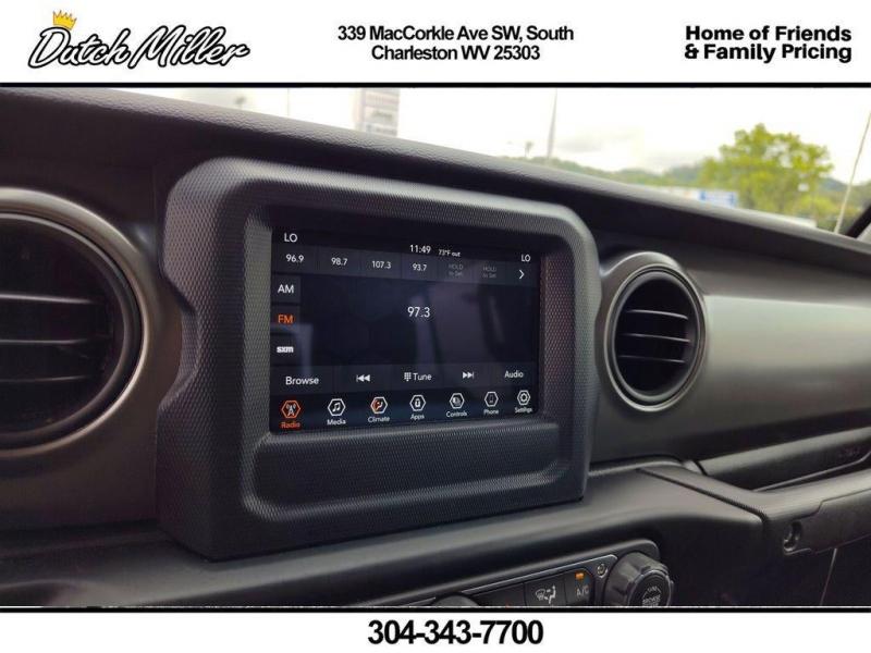 Vehicle DetailsReady to conquer roads and trails, this 2022 Jeep Gladiator Sport S in South Charleston, WV is your ticket to versatile adventure. With only 17,204 miles, this Jeep Gladiator delivers low mileage value and dependable performance from its 3.6L V6 gasoline engine paired with 4WD -- ideal for weekend escapes or daily driving. Equipped with the Off-Road Package, this Sport S is built to tackle rough terrain with confidence while maintaining comfortable on-road manners. This Jeep Gladiator also features Hands Free Bluetooth and Apple CarPlay for seamless smartphone integration, keeping navigation, music, and calls within easy reach. Automatic Climate Control ensures cabin comfort in any weather, and the CARFAX 1-Owner history adds extra peace of mind about the vehicle's care and condition. The Sport S trim strikes a balanced mix of capability and convenience, offering practical features without unnecessary complexity. Located in South Charleston, WV, this Jeep Gladiator Sport S is attractively priced -- the best price available -- delivering exceptional value for buyers seeking off-road capability, modern connectivity, and a reliable powertrain. Low mileage and a clean ownership record make this Jeep Gladiator a smart, confident purchase. Act quickly to secure this well-equipped 2022 Jeep Gladiator Sport S before someone else takes it home -- great capability, low miles, and the best price in South Charleston await.EquipmentThis vehicle is a certified CARFAX 1-owner. with XM/Sirus Satellite Radio you are no longer restricted by poor quality local radio stations while driving this Jeep Gladiator. Anywhere on the planet, you will have hundreds of digital stations to choose from. This unit has satellite radio capabilities. Never get into a cold vehicle again with the remote start feature on this vehicle. The Jeep Gladiator offers Android Auto for seamless smartphone integration. Our dealership has already run the CARFAX report and it is clean. A clean CARFAX is a great asset for resale value in the future. Protect this 2022 Jeep Gladiator from unwanted accidents with a cutting edge backup camera system. This unit keeps you comfortable with Auto Climate. This vehicle features a hands-free Bluetooth phone system. It offers Apple CarPlay for seamless connectivity. An off-road package is equipped on this model. Set the temperature exactly where you are most comfortable in the vehicle. The fan speed and temperature will automatically adjust to maintain your preferred zone climate.PackagesConvenience Group: Remote Start System; Universal Garage Door Opener. Quick Order Package 24S Sport S: Speed Sensitive Power Locks; Automatic Headlamps; Leather Wrapped Steering Wheel; Normal Duty Plus Suspension; Deep Tint Sunscreen Windows; 6. 250 lbs GVWR; 2-Piece Body Color Fender Flares; Front 1-Touch Down Power Windows; Sport S; Power Heated Mirrors; Daytime Running Lamp System; Security Alarm; Power Tailgate Lock; Remote Keyless Entry; Sun Visors with Illuminated Vanity Mirrors. Technology Group: 2-Door Passive Entry. Front Door Locks; SiriusXM Satellite Radio; Cluster 7.0"" TFT Color Display; For More Info. Call [phone]; Air Conditioning with Auto Temp Control. Popular Equipment Package: Black 3-Piece Hard Top. Trailer Tow Package: Heavy Duty Engine Cooling; Trailer Hitch Zoom; Class IV Receiver Hitch; 240 Amp Alternator. Black 3-Piece Hard Top. 2-Door Passive Entry. Front Door Locks. 17"" X 7.5"" Gloss Black Aluminum Wheels. Black Clearcoat. 245/75R17 BSW All Terrain Dueler Tires. Corning Gorilla Glass. SiriusXM Satellite Radio. MOPAR All-Weather Slush Mats. **Equipment listed is based on original vehicle build and subject to change. Please confirm the accuracy of the included equipment by calling the dealer prior to purchase.**Additional InformationCertified. Certified Pre-Owned Go Details: * Warranty Deductible: $100 * Roadside Assistance * Vehicle History * Vehicles Up to 120,000 Miles and 5 Model Years Between 75,001 and 120,000 Miles. 3 Month/3,000 Mile Maximum Care Limited Warranty, Whichever Comes First, Measured From Certified Pre-Owned Purchase Date. Thorough Reconditioning Process Using Authentic Mopar Parts. Car Rental Allowance, 3-Month Trial Subscription for SiriusXM GuardianTM and Satellite RadioDutch Miller Family owned for 50+ years!!!