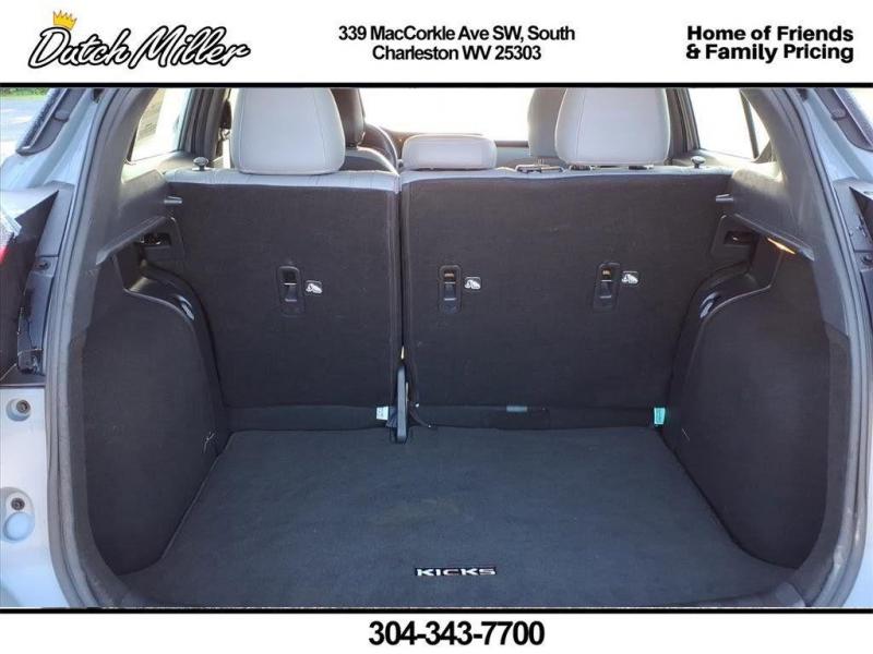 Vehicle Details2023 Nissan Kicks SR -- 4 Cyl 1.6L, FWD, 46,270 miles -- South Charleston, WV This well-maintained 2023 Nissan Kicks SR delivers smart urban driving with a fuel-efficient 1.6L 4-cylinder engine and front-wheel drive, ideal for daily commutes and weekend adventures. With only 46,270 miles, this Nissan Kicks pairs sharp styling and nimble handling with a roomy interior and modern technology features to keep you comfortable and connected on every trip. Highlighted features include a Back-Up Camera for confident parking and tight-space maneuvering, Android Auto integration for seamless smartphone access to navigation, music, and messaging, and Hands-Free Bluetooth for safer calls while driving. This vehicle carries a CARFAX 1-Owner history and a CARFAX Clean Report, offering added peace of mind about its maintenance and ownership record. Located in South Charleston, WV, this Nissan Kicks SR represents exceptional value and is competitively priced -- the best price available for a comparable model in the area. Whether you're seeking efficiency, tech-friendly convenience, or a practical compact crossover, this Nissan Kicks provides a balanced package without sacrificing style. Schedule a test drive today at our South Charleston location to experience the responsive performance and feature-rich cabin firsthand. Competitive pricing, verified history, and low miles make this 2023 Nissan Kicks SR a smart choice.EquipmentThe Nissan Kicks is pure luxury with a heated steering wheel. See what's behind you with the back up camera on this Nissan Kicks. This unit's Lane Departure Warning keeps you safe by alerting you when you drift from your lane. This vehicle is a certified CARFAX 1-owner. This small suv has a clean CARFAX vehicle history report. This vehicle keeps you comfortable with Auto Climate. The rear parking assist technology on this 2023 Nissan Kicks will put you at ease when reversing. The system alerts you as you get closer to an obstruction. The leather seats in this Nissan Kicks are a must for buyers looking for comfort, durability, and style. The vehicle offers Apple CarPlay for seamless connectivity. This 2023 Nissan Kicks comes equipped with Android Auto for seamless smartphone integration on the road. This 2023 Nissan Kicks features a high end BOSE stereo system. This vehicle features a hands-free Bluetooth phone system.It's Lane Departure Warning keeps you safe by alerting you when you drift from your lane.The vehicle keeps you comfortable with Auto Climate.PackagesSR Premium Package: Bose Personal Plus Audio System; Heated Front Seats; Prima-Tex Appointed Seat Trim; Security System; Tonneau Cover; Heated Steering Wheel. Technology Package: NissanConnect Services. Special Paint - Aspen White/super Black. 17"" Black Alloy Wheels. Carpeted Floor Mats with Cargo Mat. Splash Guards Grain (4 Piece). **Equipment listed is based on original vehicle build and subject to change. Please confirm the accuracy of the included equipment by calling the dealer prior to purchase.**SR Premium Package: Bose Personal Plus Audio System; Heated Front Seats; Prima-Tex Appointed Seat Trim; Security System; Tonneau Cover; Heated Steering Wheel. Technology Package: NissanConnect Services. Special Paint - Aspen White/super Black. 17"" Black Alloy Wheels. Carpeted Floor Mats with Cargo Mat. Splash Guards Grain (4 Piece). **Equipment listed is based on original vehicle build and subject to change. Please confirm the accuracy of the included equipment by calling the dealer prior to purchase.**SR Premium Package: Bose Personal Plus Audio System; Heated Front Seats; Prima-Tex Appointed Seat Trim; Security System; Tonneau Cover; Heated Steering Wheel. Technology Package: NissanConnect Services. Special Paint - Aspen White/super Black. 17"" Black Alloy Wheels. Carpeted Floor Mats with Cargo Mat. Splash Guards Grain (4 Piece). **Equipment listed is based on original vehicle build and subject to change. Please confirm the accuracy of the included equipment by calling the dealer prior to purchase.**Additional InformationDutch Miller Family owned for 50+ years!!!