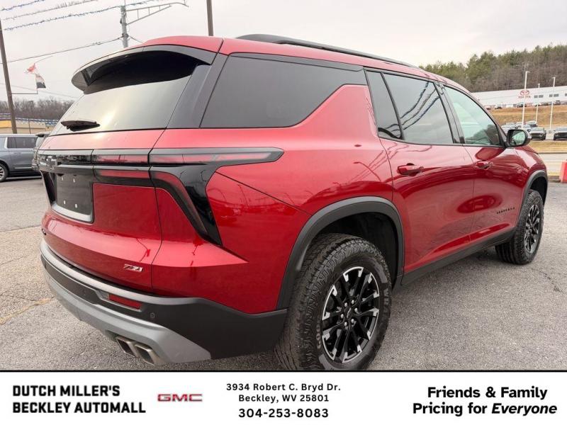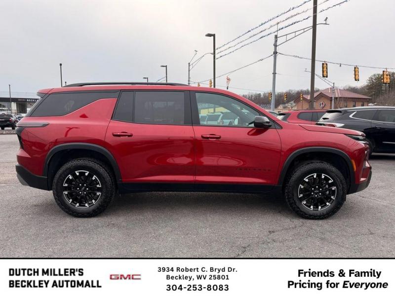 Vehicle Details: 2025 Chevrolet Traverse AWD Z71 -- Beckley, WV -- Best Price, Low Mileage Ready for the roads of West Virginia, this 2025 Chevrolet Traverse Z71 combines rugged capability with modern convenience. With just 23,500 miles, this low-mileage AWD SUV delivers dependable performance from its efficient 4-cylinder 2.5L gasoline engine and offers confident traction in rain, snow, and gravel. Inside, enjoy a tech-forward cabin featuring Android Auto and Apple CarPlay for seamless smartphone integration, plus built-in Navigation for easy route planning. A heated steering wheel keeps you comfortable on chilly mornings, and the Z71 trim adds off-road-inspired styling and suspension for added capability. This Chevrolet Traverse is a CARFAX 1-Owner vehicle, reflecting a clean ownership history and careful maintenance. Priced to move, it offers the best value in the Beckley, WV area -- exceptional condition and features without the premium cost. Whether you're commuting, towing light loads, or planning a weekend getaway, this Chevrolet Traverse balances fuel efficiency, interior space, and modern amenities. Schedule a test drive in Beckley today to experience the ride quality, comfort, and technology firsthand. With low miles and an unbeatable price, this 2025 Chevrolet Traverse AWD Z71 won't last long. Contact us for details and to arrange a viewing. Equipment: This vehicle comes equipped with Android Auto for seamless smartphone integration on the road. Keep your hands warm all winter with a heated steering wheel in it . The leather seats in this vehicle are a must for buyers looking for comfort, durability, and style. Protect the Chevrolet Traverse from unwanted accidents with a cutting edge backup camera system. This unit has a clean CARFAX vehicle history report. This model features a hands-free Bluetooth phone system. It has automated speed control that adjusts to maintain a safe following distance, enhancing highway driving convenience. Good News! This certified CARFAX 1-owner vehicle has only had one owner before you. This unit offers Apple CarPlay for seamless connectivity. This vehicle stays safely in its lane with Lane Keep Assist. The installed navigation system will keep you on the right path. Never get into a cold vehicle again with the remote start feature on the vehicle. Packages: Preferred Equipment Group 2Z7. Power Dual Glass Panoramic Sliding Sunroof. Radiant Red Tintcoat. **Equipment listed is based on original vehicle build and subject to change. Please confirm the accuracy of the included equipment by calling the dealer prior to purchase.**