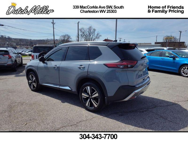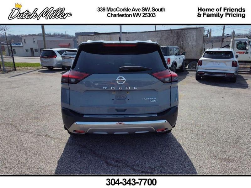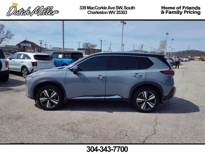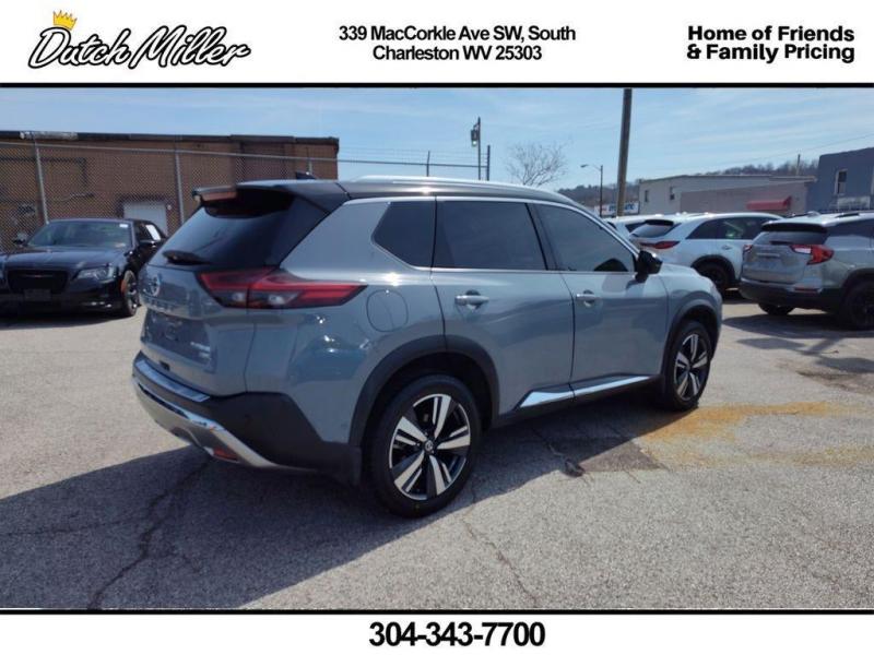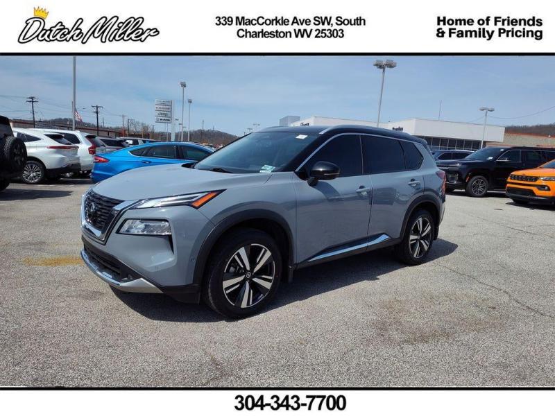 Vehicle Details2021 Nissan Rogue Platinum AWD -- Exceptional value in South Charleston, WV. This well-maintained Nissan Rogue Platinum pairs a fuel-efficient 4-cylinder 2.5L gasoline engine with the confidence of all-wheel drive, delivering smooth commuting and capable handling in varying West Virginia weather. Premium exterior and interior features set this Nissan Rogue apart: Remote Start for convenient climate control, Backup Camera for safer parking and maneuvering, BOSE premium stereo for immersive audio, XM Radio for endless entertainment options, and Apple CarPlay for seamless smartphone integration and navigation.Step inside to find a refined cabin with high-quality materials, heated seating, advanced driver assists, and intuitive controls designed for comfort and convenience on every drive. Safety systems and tech features help keep drivers and passengers secure while enhancing everyday usability. Whether you're navigating city streets, highway commutes, or weekend excursions, the Nissan Rogue Platinum's balanced performance and thoughtful equipment make it a versatile choice.Located in South Charleston, WV, this 2021 Nissan Rogue Platinum is competitively priced and represents the best price available for comparable models in the area. With premium amenities, proven Nissan reliability, and AWD capability, it's an excellent value for drivers seeking style, comfort, and practicality. Contact us today to schedule a test drive and experience this Nissan Rogue Platinum for yourself.Additional InformationDutch Miller Family owned for 50+ years!!!