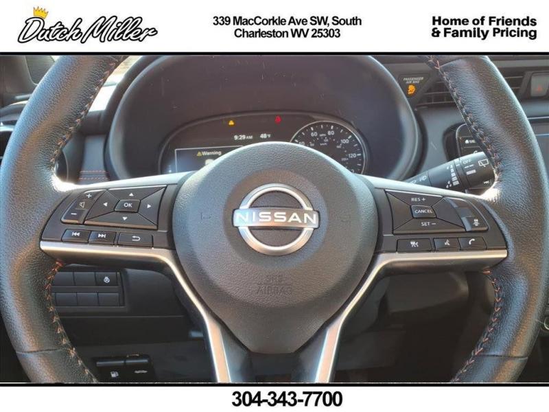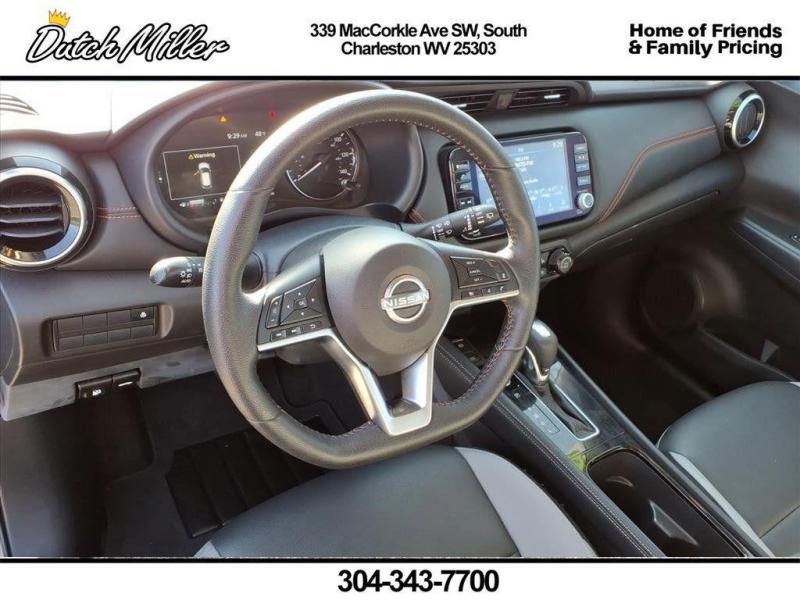 Vehicle Details2023 Nissan Kicks SR -- 4 Cyl 1.6L, FWD, 46,270 miles -- South Charleston, WV This well-maintained 2023 Nissan Kicks SR delivers smart urban driving with a fuel-efficient 1.6L 4-cylinder engine and front-wheel drive, ideal for daily commutes and weekend adventures. With only 46,270 miles, this Nissan Kicks pairs sharp styling and nimble handling with a roomy interior and modern technology features to keep you comfortable and connected on every trip. Highlighted features include a Back-Up Camera for confident parking and tight-space maneuvering, Android Auto integration for seamless smartphone access to navigation, music, and messaging, and Hands-Free Bluetooth for safer calls while driving. This vehicle carries a CARFAX 1-Owner history and a CARFAX Clean Report, offering added peace of mind about its maintenance and ownership record. Located in South Charleston, WV, this Nissan Kicks SR represents exceptional value and is competitively priced -- the best price available for a comparable model in the area. Whether you're seeking efficiency, tech-friendly convenience, or a practical compact crossover, this Nissan Kicks provides a balanced package without sacrificing style. Schedule a test drive today at our South Charleston location to experience the responsive performance and feature-rich cabin firsthand. Competitive pricing, verified history, and low miles make this 2023 Nissan Kicks SR a smart choice.EquipmentThe Nissan Kicks is pure luxury with a heated steering wheel. See what's behind you with the back up camera on this Nissan Kicks. This unit's Lane Departure Warning keeps you safe by alerting you when you drift from your lane. This vehicle is a certified CARFAX 1-owner. This small suv has a clean CARFAX vehicle history report. This vehicle keeps you comfortable with Auto Climate. The rear parking assist technology on this 2023 Nissan Kicks will put you at ease when reversing. The system alerts you as you get closer to an obstruction. The leather seats in this Nissan Kicks are a must for buyers looking for comfort, durability, and style. The vehicle offers Apple CarPlay for seamless connectivity. This 2023 Nissan Kicks comes equipped with Android Auto for seamless smartphone integration on the road. This 2023 Nissan Kicks features a high end BOSE stereo system. This vehicle features a hands-free Bluetooth phone system.It's Lane Departure Warning keeps you safe by alerting you when you drift from your lane.The vehicle keeps you comfortable with Auto Climate.PackagesSR Premium Package: Bose Personal Plus Audio System; Heated Front Seats; Prima-Tex Appointed Seat Trim; Security System; Tonneau Cover; Heated Steering Wheel. Technology Package: NissanConnect Services. Special Paint - Aspen White/super Black. 17"" Black Alloy Wheels. Carpeted Floor Mats with Cargo Mat. Splash Guards Grain (4 Piece). **Equipment listed is based on original vehicle build and subject to change. Please confirm the accuracy of the included equipment by calling the dealer prior to purchase.**SR Premium Package: Bose Personal Plus Audio System; Heated Front Seats; Prima-Tex Appointed Seat Trim; Security System; Tonneau Cover; Heated Steering Wheel. Technology Package: NissanConnect Services. Special Paint - Aspen White/super Black. 17"" Black Alloy Wheels. Carpeted Floor Mats with Cargo Mat. Splash Guards Grain (4 Piece). **Equipment listed is based on original vehicle build and subject to change. Please confirm the accuracy of the included equipment by calling the dealer prior to purchase.**SR Premium Package: Bose Personal Plus Audio System; Heated Front Seats; Prima-Tex Appointed Seat Trim; Security System; Tonneau Cover; Heated Steering Wheel. Technology Package: NissanConnect Services. Special Paint - Aspen White/super Black. 17"" Black Alloy Wheels. Carpeted Floor Mats with Cargo Mat. Splash Guards Grain (4 Piece). **Equipment listed is based on original vehicle build and subject to change. Please confirm the accuracy of the included equipment by calling the dealer prior to purchase.**Additional InformationDutch Miller Family owned for 50+ years!!!
