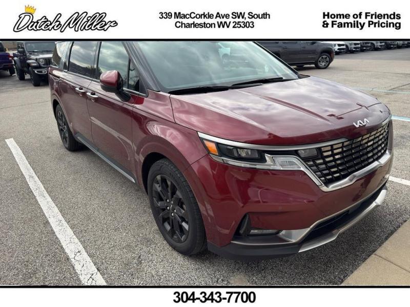 Vehicle DetailsDiscover exceptional value with this 2024 Kia Carnival SX, now available in South Charleston, WV. With just 23,013 miles, this low-mileage, V6 3.5L gasoline-powered minivan combines powerful performance and efficient handling with front-wheel drive for comfortable daily driving and long-distance trips alike. Priced competitively, this Kia Carnival SX offers the best price in the area for buyers seeking premium features without the premium cost. Well-equipped for modern convenience and safety, this Kia Carnival includes Remote Start for easy climate control on cold mornings, integrated Navigation to guide your journeys, and Collision Avoidance technology to help protect occupants and reduce the risk of incidents. A Back-Up Camera enhances visibility when reversing and parking, making maneuvering effortless in tight spaces. This SUV alternative has a CARFAX 1-Owner report, providing added peace of mind about its ownership history and maintenance. Inside, expect a spacious cabin with flexible seating and storage options ideal for families, commuters, and weekend adventurers. The SX trim level delivers upscale touches, thoughtful technology, and driver-focused comforts that elevate every drive. Located in South Charleston, WV, this Kia Carnival SX is ready for a test drive and immediate delivery. Don't miss this chance to own a low-mileage, feature-rich minivan at the best price--contact us today to schedule an appointment.EquipmentApple CarPlay: Seamless smartphone integration for it - stay connected and entertained on the go! This vehicle is a certified CARFAX 1-owner. This Kia Carnival features a hands-free Bluetooth phone system. The leather seats in this Kia Carnival are a must for buyers looking for comfort, durability, and style. This vehicle offers Android Auto for seamless smartphone integration. Protect this model from unwanted accidents with a cutting edge backup camera system. The vehicle has a clean CARFAX vehicle history report. You'll never again be lost in a crowded city or a country region with the navigation system on this vehicle. This 2024 Kia Carnival utilizes collision avoidance to enhance safety by automatically detecting and evading potential accidents. Start this model from inside with remote start. The Kia Carnival has a V6, 3.5L high output engine. Load groceries and much more with ease into this unit thanks to the power liftgate.PackagesInterior Light Kit. Illuminated Door Sill Plates. Carpeted Floor Mats (8-Passenger). Cargo Tray. **Equipment listed is based on original vehicle build and subject to change. Please confirm the accuracy of the included equipment by calling the dealer prior to purchase.**Additional InformationCertified. Certification Program Details: Kia Certified Pre-Owned (CPO) owners can cruise the open road with confidence knowing their car comes with the industry leading 10-year/100,000 mile Certified Pre-Owned Limited Powertrain Warranty and 12 months/12,000 miles of Platinum Coverage. Additionally upon purchase, you will be welcomed with additional coverage including 24-hour Roadside Assistance and Towing/Rental/Travel Breakdown coverage. 22/26 City/Highway MPG Certified. Kia CPO Lite Details: * Kia Branded Vehicles with 0-100,000 Miles, 7-10 Years Back From Current Year (2015-2018 MY in 2024), 135 Point Inspection, 6 Months/6,000 Mile Powertrain Warranty, $50 Deductible, Roadside Assistance - 1 Year/Unlimited MilesDutch Miller Family owned for 50+ years!!!