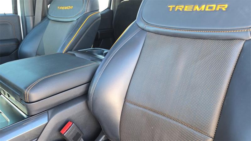 2023 Ford F-150 Tremor Oxford White 4WD 3.5L V6 EcoBoostRecent Arrival! Clean CARFAX. CARFAX One Owner.Equipment Group 402A adds remote start, 360-degree camera, LED side-mirror spotlights, power-sliding rear window, and wireless charging pad.Twin-panel moonroof for an upgraded cabin feel.Tow package with integrated trailer brake controller for easy hauling.B&O Unleashed premium sound system with 18 speakers.Power tailgate with tailgate step and LED box lighting.20 alloy wheels with all-terrain tires for confident driving.Heated steering wheel for added comfort.3.5L V6 EcoBoost engine with electronic 10-speed automatic transmission.3.73 electronic-lock rear axle for improved capability.Advanced adaptive cruise control for highway convenience.Heated front and rear seats enhance year-round comfort.Navigation system keeps you on track.Bed utility package includes box link and bed utility options.High-intensity LED mirror spotlights for excellent visibility.Pro Power Onboard with 7.2 kW output for on-the-go power needs.Lane-keeping system and blind spot monitoring for added safety.Trailer tow package and rear parking sensors for ease while towing.Remote start system for added convenience.Dynamic hitch assist and trailer sway control.Power-adjustable pedals for customized comfort.Ford Co-Pilot360 Assist 2.0 with cross lane alert added for driver confidence.