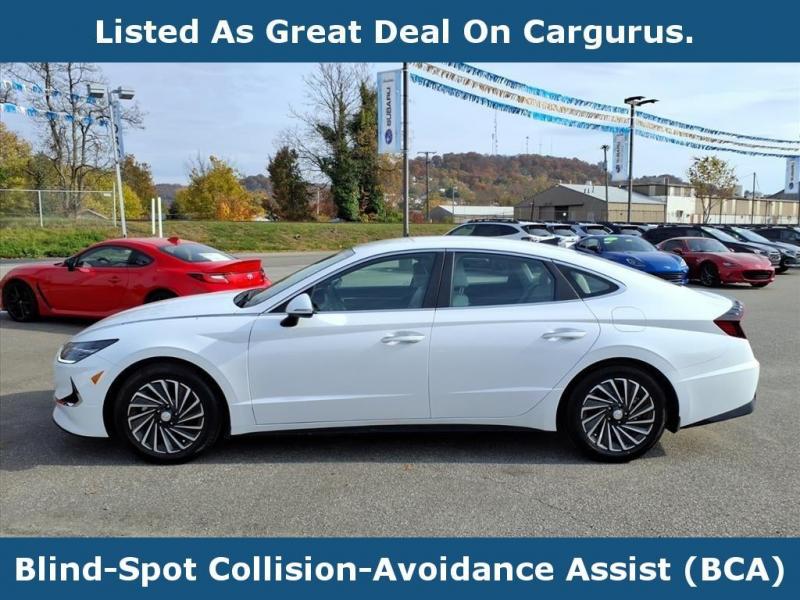 Vehicle Details2023 Hyundai Sonata Hybrid SEL -- exceptional value in Charleston, WV! This sleek four-door sedan pairs efficient FWD performance with a 4-cylinder 2.0L Full Hybrid Electric (FHEV) powertrain for outstanding fuel economy and refined daily driving. With just 43,850 miles and CARFAX 1-Owner history, this Hyundai Sonata Hybrid SEL delivers confidence and long-term reliability at the best price in the area. Step inside to enjoy premium features including BOSE premium audio for crisp music, Android Auto for seamless smartphone integration, and Hands Free Bluetooth for safe, convenient calling. Automatic Climate Control keeps every drive comfortable, while thoughtful interior appointments and an ergonomic layout create a refined cabin experience for driver and passengers. This Hyundai Sonata Hybrid SEL balances advanced hybrid technology with practical convenience: responsive handling, smooth automatic operation, and hybrid efficiency make it an ideal commuter or family sedan. The CARFAX 1-Owner report enhances peace of mind, and the vehicle's condition reflects careful previous ownership. Located in Charleston, WV, this Hyundai Sonata Hybrid is priced to move -- offering the best value for shoppers seeking hybrid savings without sacrificing comfort and tech. Schedule a test drive today to experience the quiet, efficient acceleration and tech-savvy cabin firsthand. Don't miss this opportunity to own a low-mileage 2023 Hyundai Sonata Hybrid SEL at the best price in Charleston, WV.EquipmentThis vehicle is a certified CARFAX 1-owner. This mid-size car features a hands-free Bluetooth phone system. It offers Android Auto for seamless smartphone integration. Our dealership has already run the CARFAX report and it is clean. A clean CARFAX is a great asset for resale value in the future. This Hyundai Sonata Hybrid offers Apple CarPlay for seamless connectivity. Engulf yourself with the crystal clear sound of a BOSE sound system in it. The Hyundai Sonata Hybrid keeps you comfortable with Auto Climate. This 2023 Hyundai Sonata Hybrid warns of approaching vehicles with Cross-Traffic Alert. Protect the vehicle from unwanted accidents with a cutting edge backup camera system. The installed navigation system will keep you on the right path. Start this unit from inside with remote start. With the keyless entry system on the vehicle you can pop the trunk without dropping your bags from the store. This vehicle embodies class and sophistication with its refined white exterior.PackagesOption Group 01. Serenity White. Carpeted Floor Mats. Reversible Cargo Tray. Mud Guards. Cargo Net. First Aid Kit. **Equipment listed is based on original vehicle build and subject to change. Please confirm the accuracy of the included equipment by calling the dealer prior to purchase.**Additional InformationWhen was the last time you used the word 'love' to describe how you feel about your car? At Dutch Miller Subaru, we hear our customers say it all the time, and for good reason. Serving drivers from the Charleston, South Charleston, Teays Valley, Hurricane WV and Saint Albans WV. We offer a wide range of new and used vehicles. This vehicle will not make it to the weekend!! CALL NOW to reserve your Test Drive Appointment!! [phone].