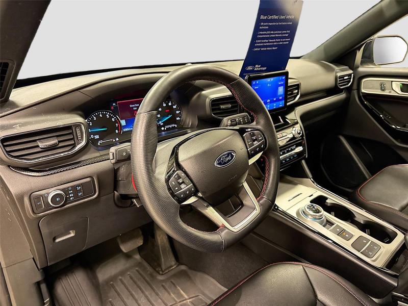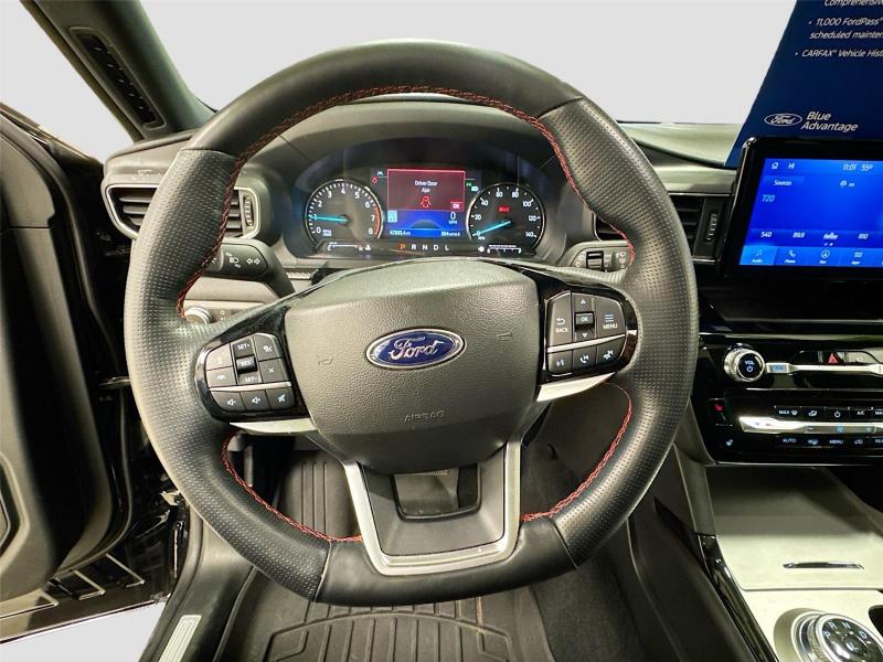 Mike Patton Auto Family is your value price leader for a new or pre-owned vehicle! Price excludes Tax, Title, License and Dealer Fees. We are centrally located in beautiful LaGrange, Georgia just off interstate 85 at exit 18 - we proudly serve ALABAMA, FLORIDA, SOUTH CAROLINA & TENNESSEE. \n\n\n\nThis 2022 Ford Explorer ST-Line, has a Agate Black exterior and an Ebony interior color. 47,293 miles. Stock Number FTA28505. You can connect with us by calling \n\n\n\nNo Accidents! One Owner! \n \nOTHER NOTABLE FEATURES AND OPTIONS YOU SHOULD KNOW ABOUT:\n\nEquipment Group 250A10-Speed Automatic Transmission2.3L EcoBoost I-4 EngineActiveX Captain's Chairs with Miko Inserts3.58 Non-Limited-slip Rear Axle RatioTBD GVWRB&O Sound System by Bang and OlufsenP255/55R20 AS BSW Tires20 Machined Aluminum Wheels with Painted Pockets\n\n\n\nSafety and Security Forward collision mitigation - Forward thinking. You look away for just a second and suddenly the vehicle in front of you has stopped. That's when the forward collision mitigation system comes to life. When it senses an impending impact, it will activate a combination of features to help prevent or reduce the severity of an accident. Forward collision mitigation is always looking ahead. Pedestrian impact prevention - An extra step toward safety. Pedestrians don't always stop, look, and listen, but with Pedestrian Impact Prevention, your vehicle is equipped to better see them and avoid them. This system constantly monitors the road ahead to identify and track pedestrians. It projects that image to an interior display screen, AND should an impact become likely, Pedestrian impact prevention takes steps to avoid a collision. Hands-on cruise control. Set it and forget it. Road trips used to be stressful. Cruise control only managed speed, but not distance or safety. Now, with hands-on cruise control, simply set your desired speed and let sensor technology maintain a safe distance between you and surrounding vehicles. It slows you down; speeds you up and even keeps you in your own lane. Meet your ultimate co-pilot with hands-on cruise control.Technology and Telematics Smart device mirroring - Smartphone, meet smart car. You can control your device through your vehicle's infotainment system. Smart device mirroring brings together safety and convenience by making it easier to find what you're looking for while keeping your eyes on the road. Mobile hotspot - WiFi on the fly. Connect your devices to the Internet through your vehicle's private mobile hotspot and take the internet wherever your journey takes you, without eating up your data allowance. Find the hotspot with mobile hotspot.\n\nENGINE: 2.3L ECOBOOST I-4, AGATE BLACK METALLIC, EBONY, ACTIVEX CAPTAIN'S CHAIRS W/MIKO INSERTS \n At Mike Patton Ford, we're here to Serve you! Our staff is 100% dedicated to customer satisfaction and we understand that you need clear, transparent information throughout the car buying process. With our live market pricing philosophy, we offer the right cars at the right price, and the transparency to back it up!\n