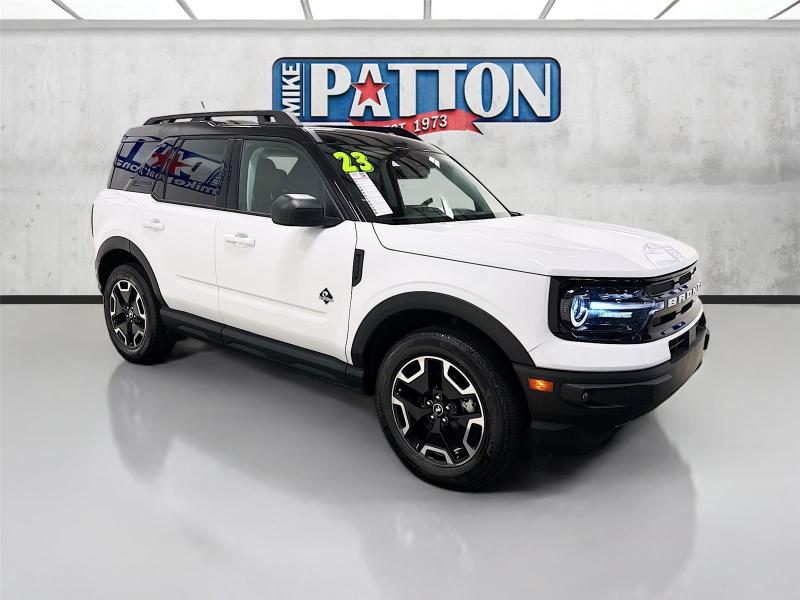 Mike Patton Auto Family is your value price leader for a new or pre-owned vehicle! Price excludes Tax, Title, License and Dealer Fees. We are centrally located in beautiful LaGrange, Georgia just off interstate 85 at exit 18 - we proudly serve ALABAMA, FLORIDA, SOUTH CAROLINA & TENNESSEE. \n\n\n\nThis 2023 Ford Bronco Sport Outer Banks, has a Oxford White exterior and an Ebony/Roast interior color. 13,777 miles. Stock Number FPE22880. You can connect with us by calling \n\n\n\nNo Accidents! One Owner! \n \nOTHER NOTABLE FEATURES AND OPTIONS YOU SHOULD KNOW ABOUT:\n\nFord Co-Pilot360 Assist+ ($895 value)Tech Package ($1,285 value)Equipment Group 300A8-Speed Automatic TransmissionLeather Trimmed Heated Sport Contour Bucket Seats1.5L EcoBoost Engine3.80 Axle Ratio4,630 lbs GVWRAM/FM Stereo225/60R18 All Season Tires Bsw18 Ebony Black WheelsFront and Rear Floor Liners (without Carpet Mats) ($160 value)Power Moonroof ($920 value)Shadow Black Roof ($500 value)\n\n\n\nSafety and Security Forward collision mitigation - Forward thinking. You look away for just a second and suddenly the vehicle in front of you has stopped. That's when the forward collision mitigation system comes to life. When it senses an impending impact, it will activate a combination of features to help prevent or reduce the severity of an accident. Forward collision mitigation is always looking ahead. Pedestrian impact prevention - An extra step toward safety. Pedestrians don't always stop, look, and listen, but with Pedestrian Impact Prevention, your vehicle is equipped to better see them and avoid them. This system constantly monitors the road ahead to identify and track pedestrians. It projects that image to an interior display screen, AND should an impact become likely, Pedestrian impact prevention takes steps to avoid a collision. Hands-on cruise control. Set it and forget it. Road trips used to be stressful. Cruise control only managed speed, but not distance or safety. Now, with hands-on cruise control, simply set your desired speed and let sensor technology maintain a safe distance between you and surrounding vehicles. It slows you down; speeds you up and even keeps you in your own lane. Meet your ultimate co-pilot with hands-on cruise control.Technology and Telematics Smart device mirroring - Smartphone, meet smart car. You can control your device through your vehicle's infotainment system. Smart device mirroring brings together safety and convenience by making it easier to find what you're looking for while keeping your eyes on the road. Mobile hotspot - WiFi on the fly. Connect your devices to the Internet through your vehicle's private mobile hotspot and take the internet wherever your journey takes you, without eating up your data allowance. Find the hotspot with mobile hotspot.\n\nENGINE: 1.5L ECOBOOST, OXFORD WHITE, EBONY/ROAST, LEATHER TRIMMED HEATED SPORT CONTOUR BUCKET SEATS \n At Mike Patton Ford, we're here to Serve you! Our staff is 100% dedicated to customer satisfaction and we understand that you need clear, transparent information throughout the car buying process. With our live market pricing philosophy, we offer the right cars at the right price, and the transparency to back it up!\n