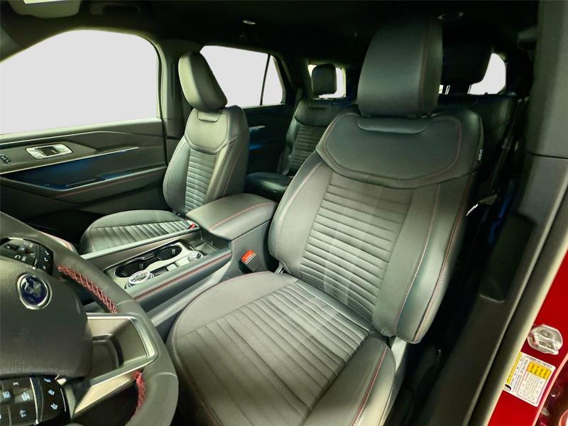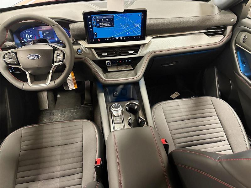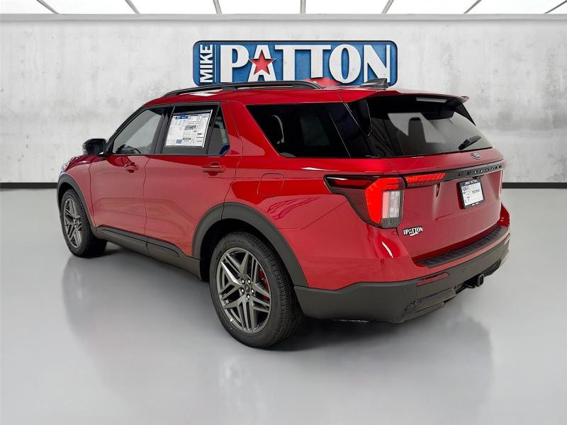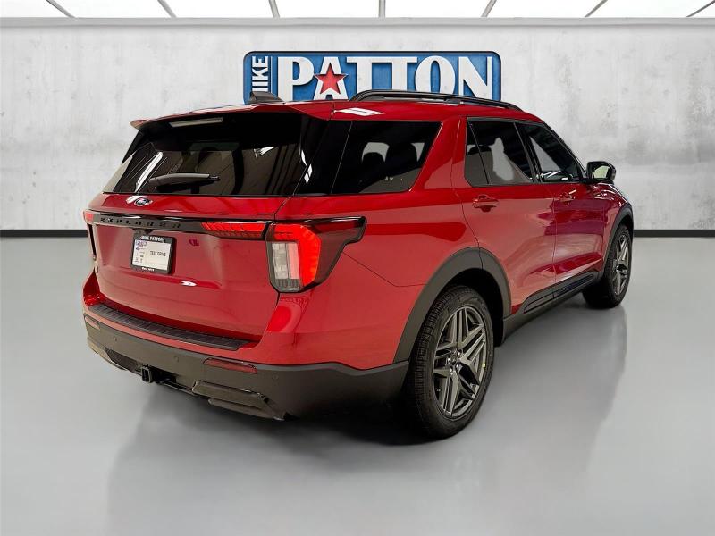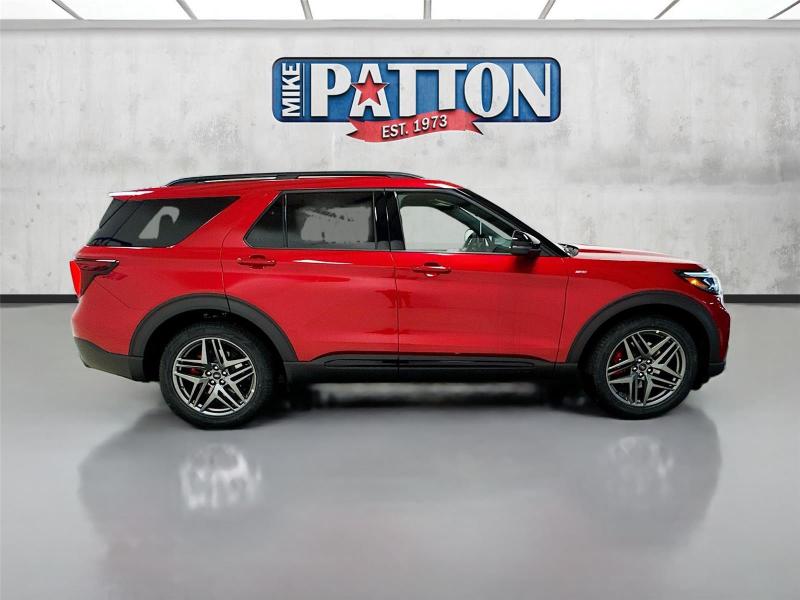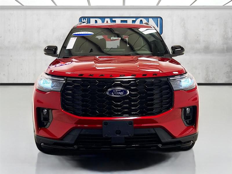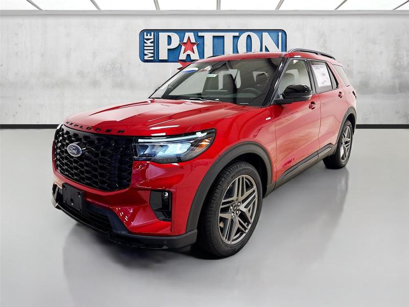 This New 2026 Ford Explorer ST-Line, is Rapid Red Metallic Tinted Clearcoat in color with an Onyx interior. Stock Number 426057. You can connect with us by calling [phone].\n\n\n \nLifetime Powertrain Warranty\n\nImportant Package and Feature Information\n\nPremium Package ($1,360 value)110V/150W AC Power Outlet2nd Row Heated SeatsAmbient LightingMemory Driver's SeatAuto-Dimming Interior Rearview MirrorManual-Folding Sideview MirrorsRain-Sensing Wipers (front Only)Equipment Group 300A Standard Package10-Speed Automatic Transmission2.3L EcoBoost I-4 EngineHeated Unique Cloth Captain's ChairsGVWR: 5,830 lbsB&O Sound System by Bang and OlufsenST-Line Street Pack ($1,450 value)Performance BrakesRed Painted Performance Front and Rear Brake Calipers21 Magnetite-Painted Aluminum Wheels\n\n\n\nSafety and Security Hands-on cruise control. Set it and forget it. Road trips used to be stressful. Cruise control only managed speed, but not distance or safety. Now, with hands-on cruise control, simply set your desired speed and let sensor technology maintain a safe distance between you and surrounding vehicles. It slows you down; speeds you up and even keeps you in your own lane. Meet your ultimate co-pilot with hands-on cruise control. Hands-off cruise control - Set it and forget it. Road trips used to be stressful. Cruise control only managed speed, but not distance or safety. Now with hands-off cruise control simply set your desired speed and let sensor technology maintain a safe distance between you and surrounding vehicles with minimal steering input from you. It slows you down; speeds you up and even keeps you in your own lane. Meet your ultimate co-pilot with hands-off cruise control. BlueCruise hands-on cruise control with lane change Pedestrian impact prevention - An extra step toward safety. Pedestrians don't always stop, look, and listen, but with Pedestrian Impact Prevention, your vehicle is equipped to better see them and avoid them. This system constantly monitors the road ahead to identify and track pedestrians. It projects that image to an interior display screen, AND should an impact become likely, Pedestrian impact prevention takes steps to avoid a collision.Technology and Telematics Apple CarPlay/Android Auto smart device wireless mirroring\n\nENGINE: 2.3L ECOBOOST I-4, RAPID RED METALLIC TINTED CLEARCOAT, ONYX, HEATED UNIQUE CLOTH CAPTAIN'S CHAIRS \n At Mike Patton Ford, we're here to Serve you! Our staff is 100% dedicated to customer satisfaction and we understand that you need clear, transparent information throughout the car buying process. With our live market pricing philosophy, we offer the right cars at the right price, and the transparency to back it up!\n