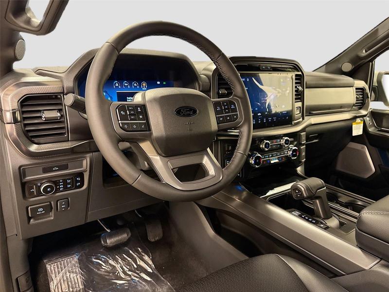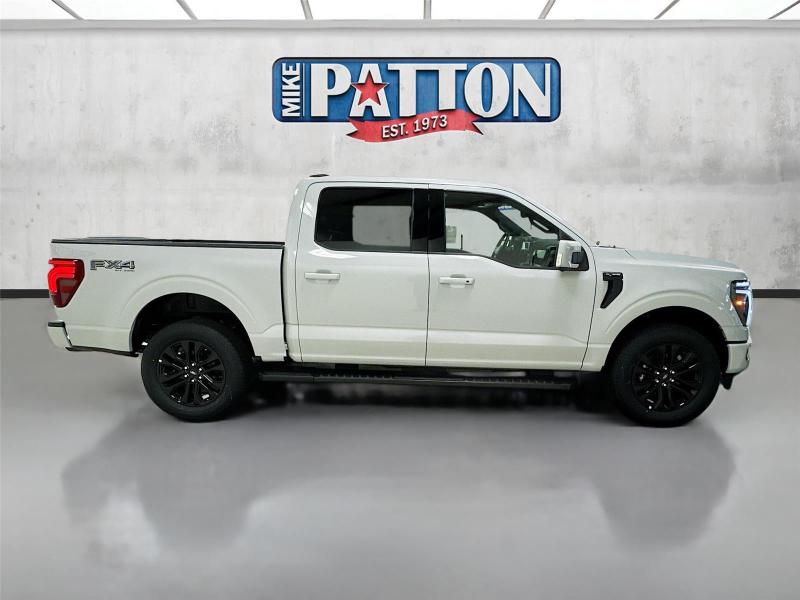 This New 2026 Ford F-150 LARIAT, is Avalanche in color with an Black interior. Stock Number 426121. You can connect with us by calling [phone].\n\n\n \nLifetime Powertrain Warranty\n\nImportant Package and Feature Information\n\nLariat Black Appearance Package ($1,225 value)ActiveX Trimmed Bucket SeatsBody-Color Front and Rear BumpersBody-Color Skull Caps and Door HandlesBlack Exterior BadgingBlack GrilleDark Interior AppliquesBlack Taillamp BezelsGray Box Side DecalFX4 OFF-ROAD PACKAGE ($1,320 value)Skid PlatesTray Style Floor Liner Without Carpet Mats4x4 FX4 Off-Road Bodyside DecalHill Descent ControlOff-Road Tuned Front Shock AbsorbersMonotube Rear ShocksBed Utility Package ($1,845 value)Pro Access TailgateTailgate Step with Work SurfaceBed Storage Boxes4 Pickup Box Tie-Down Plates6 Extended Running BoardsLED Box LightingPower TailgateMobile Office PackageConsole WorksurfacePartitioned Lockable Rear StorageWireless ChargingTow/haul Package ($1,010 value)Integrated Trailer Brake ControllerElectronic Locking with 3.73 Axle RatioEquipment Group 502A High ($4,880 value)Head-Up DisplayElectronic 10-Speed Automatic TransmissionAmbient Lighting - Ice Blue Color Only6 Extended Angular Bright Anodized Step Bar2nd Row Heated SeatsB&O Unleashed Sound System by Bang & Olufsen Radio275/60R20 All-Terrain TiresPower-Adjustable Pedals with MemoryPower-Sliding Rear WindowIlluminated Driver and Passenger Visors\n\n\n\nConvenience Unresponsive driver assistant - a reaction to inaction. Maybe you fell asleep. Maybe you lost consciousness. No matter how it happens, Unresponsive driver assistant works to help lessen the danger when it does. It detects prolonged driver unresponsiveness, automatically bringing the vehicle to a stop and turning on the hazard lights. If equipped, emergency services will also be contacted. Unresponsive driver assistant is safety that never sleeps.Safety and Security Hands-off cruise control - Set it and forget it. Road trips used to be stressful. Cruise control only managed speed, but not distance or safety. Now with hands-off cruise control simply set your desired speed and let sensor technology maintain a safe distance between you and surrounding vehicles with minimal steering input from you. It slows you down; speeds you up and even keeps you in your own lane. Meet your ultimate co-pilot with hands-off cruise control. BlueCruise hands-on cruise control with lane change Pedestrian impact prevention - An extra step toward safety. Pedestrians don't always stop, look, and listen, but with Pedestrian Impact Prevention, your vehicle is equipped to better see them and avoid them. This system constantly monitors the road ahead to identify and track pedestrians. It projects that image to an interior display screen, AND should an impact become likely, Pedestrian impact prevention takes steps to avoid a collision.Technology and Telematics SYNC 4 AppLink/Apple CarPlay/Android Auto smart device wireless mirroring\n\nENGINE: 5.0L V8, AVALANCHE \n At Mike Patton Ford, we're here to Serve you! Our staff is 100% dedicated to customer satisfaction and we understand that you need clear, transparent information throughout the car buying process. With our live market pricing philosophy, we offer the right cars at the right price, and the transparency to back it up!\n