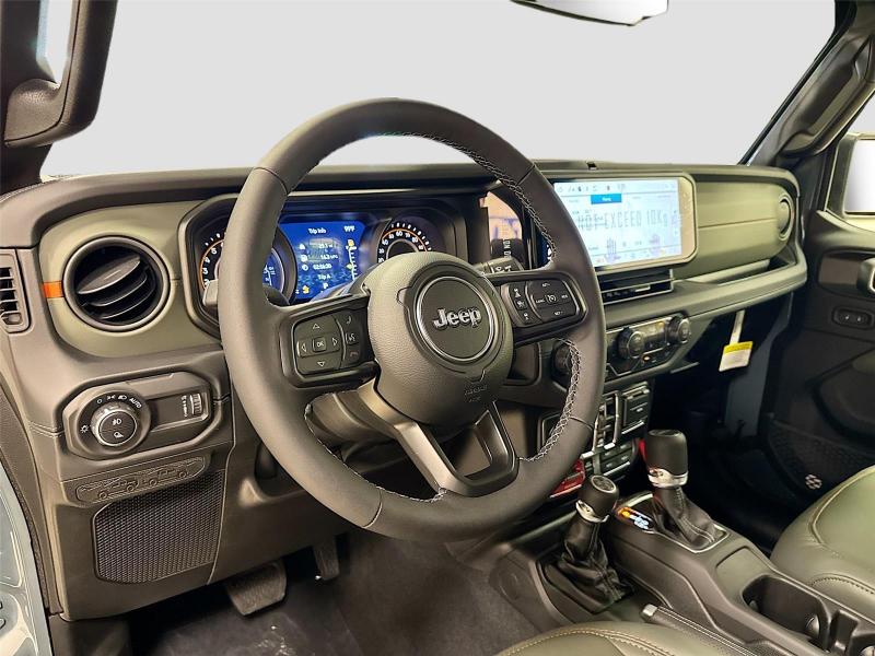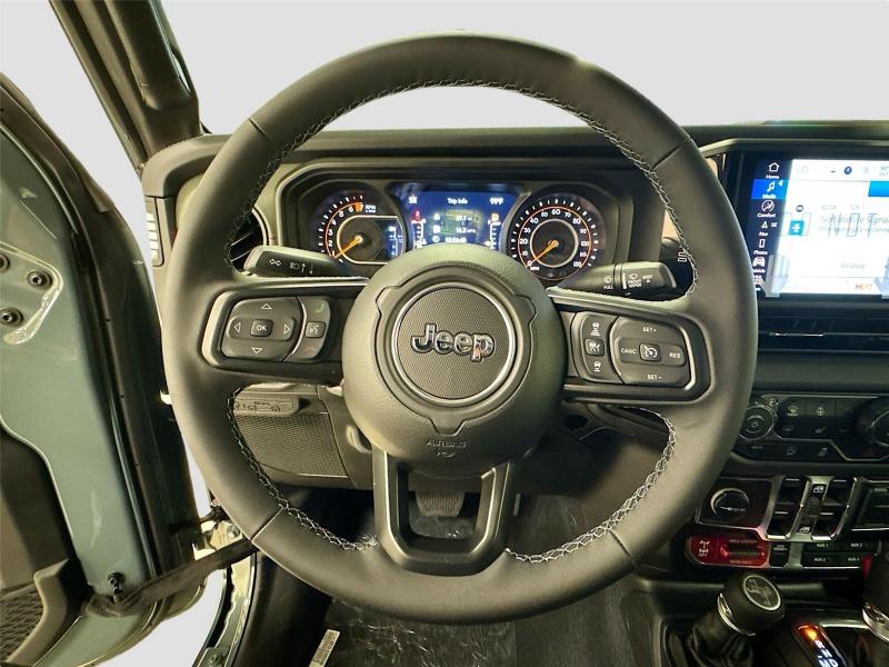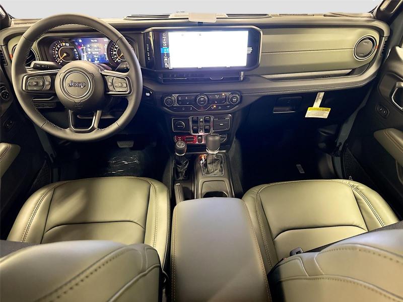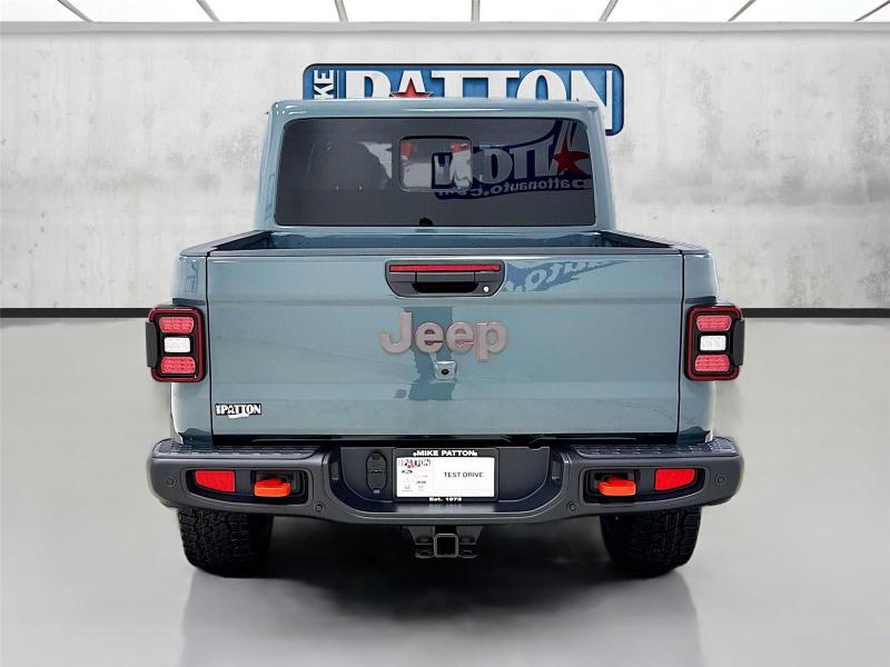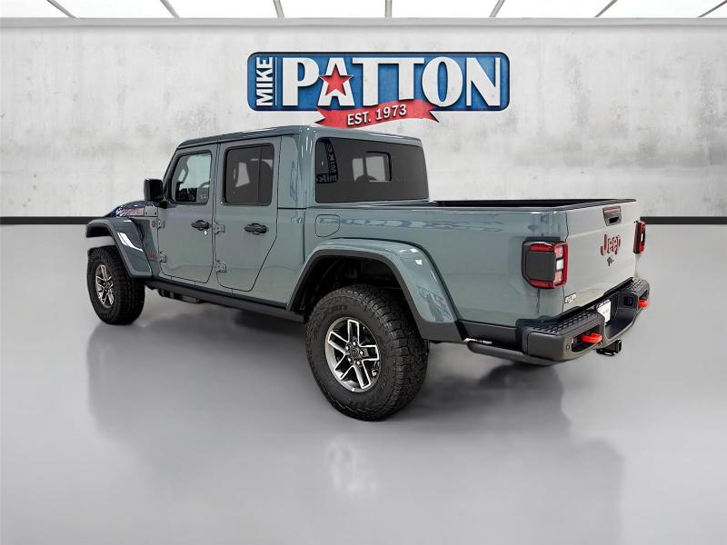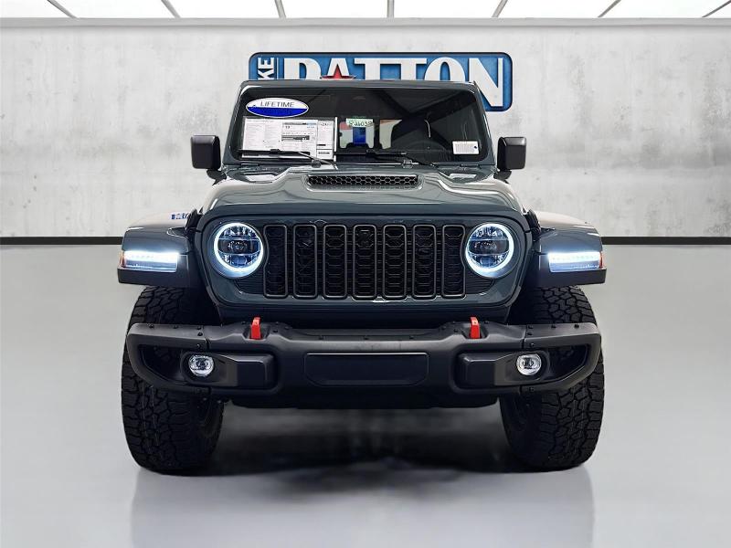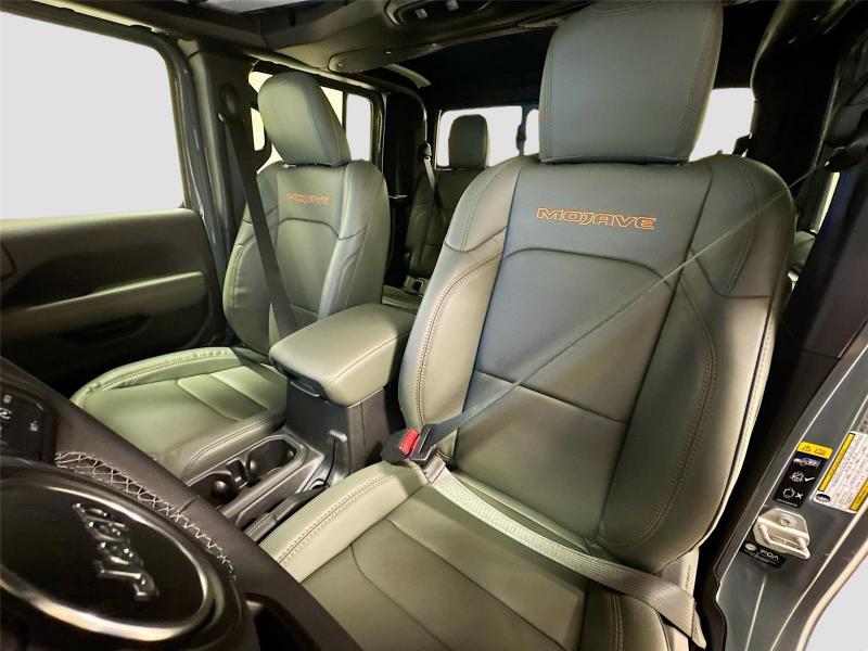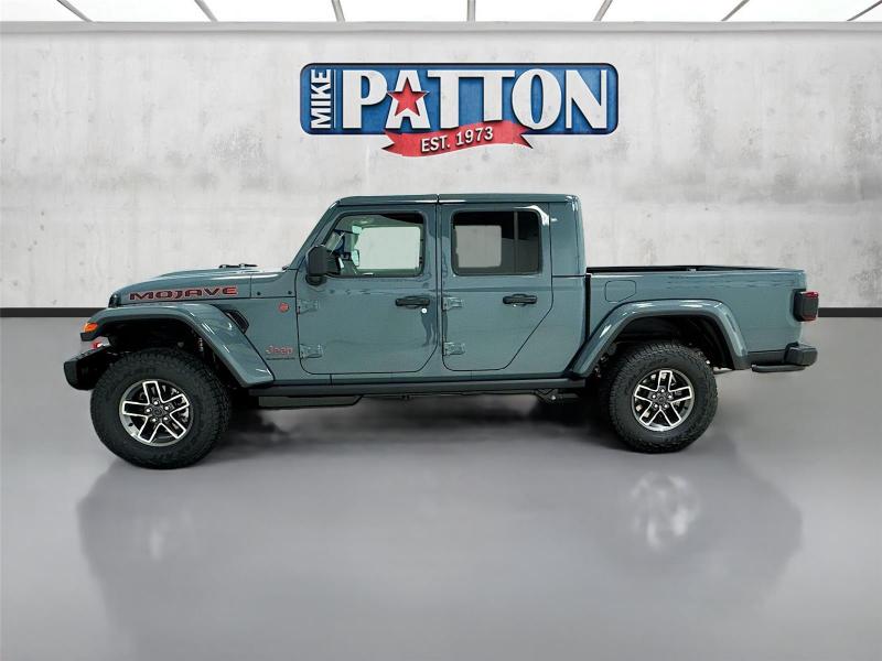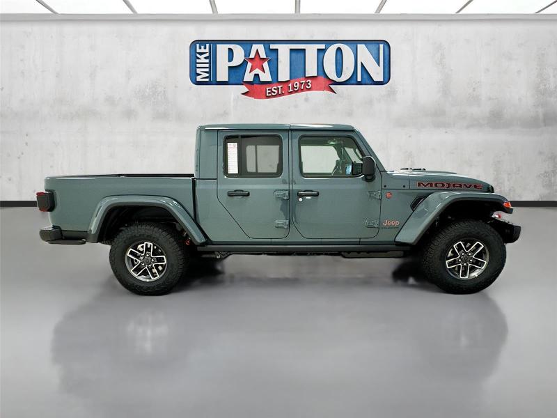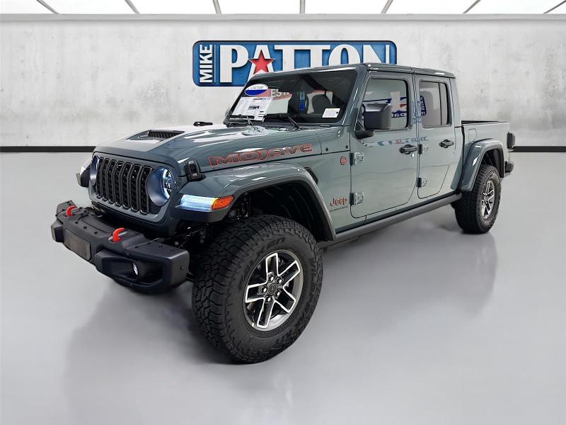 This New 2026 Jeep Gladiator Mojave X, is GRAY in color with a Green/Black interior. Stock Number 826038. You can connect with us by calling [phone].\n\n\n \n\nImportant Package and Feature Information\n\nQuick Order Package 24A Mojave X ($7,995 value)MOPAR Hardtop HeadlinerRear View Auto Dim MirrorBody Color 3-Piece Hard TopHeated Front SeatsAuto High Beam Headlamp ControlSteel Front BumperSteel Rear BumperRock Protection Sill RailsMojave Top Hood DecalBody Color Rubicon Highline FlareHeated Steering WheelLeather Trimmed Bucket SeatsAlpine Premium Audio SystemUSB Host FlipBluetooth Wireless SpeakerUconnect 5 Nav W/12.3 DisplayParkSense Rear Park Assist SystemBlind Spot & Cross Path DetectionUniversal Garage Door OpenerIntegrated Off-Road CameraIntegrated Voice Command W/Bluetooth\n\n\n\nComfort Heated steering wheel - A warm touch. Trying to drive with bulky winter gloves on isn't always easy. Keep your hands warm in cold temperatures so you can ditch the mitts and get a firm grip with this heated steering wheel.Safety and Security Blind spot warning - Protect your blind side. You checked the mirror, looked over your shoulder and still nearly collided with the car next to you. Blind spot warning alerts you to the presence of a vehicle to your sides or rear so you know if you're about to make an unsafe lane change. Replace fear and uncertainty with confidence and safety with blind spot warning.Technology and Telematics Voice activated integrated navigation system - A to B made easy! Whether it's an errand or a road trip, the voice activated integrated navigation system will guide you to your destination. No more bulky, impossible-to-fold maps, and no more stopping to ask for directions. Just tell it where you want to go, and the voice activated integrated navigation system shows you the right way. Wireless connectivity - Strike the cord. Wireless technology makes it easy to place calls without having to fumble with your phone. It integrates your device with the system inside your vehicle for hands-free access. Keep connected and keep your hands on the wheel with wireless connectivity. Apple CarPlay/Android Auto smart device wireless mirroring\n\n3.6L V6 24V VVT UPG I ENGINE W/ESS, 8-SPEED AUTOMATIC 850RE TRANSMISSION, QUICK ORDER PACKAGE 24A MOJAVE X, 17 X 7.5 DARK GRAY PAINTED WHEELS, LT285/70R17C BSW A/T TIRES, GREEN/BLACK, LEATHER TRIMMED BUCKET SEATS, 6,250 LBS GVWR, MANUFACTURER'S STATEMENT OF ORIGIN \n At Mike Patton Chrysler Dodge Jeep Ram, we're here to Serve you! Our staff is 100% dedicated to customer satisfaction and we understand that you need clear, transparent information throughout the car buying process. With our live market pricing philosophy, we offer the right cars at the right price, and the transparency to back it up!\n