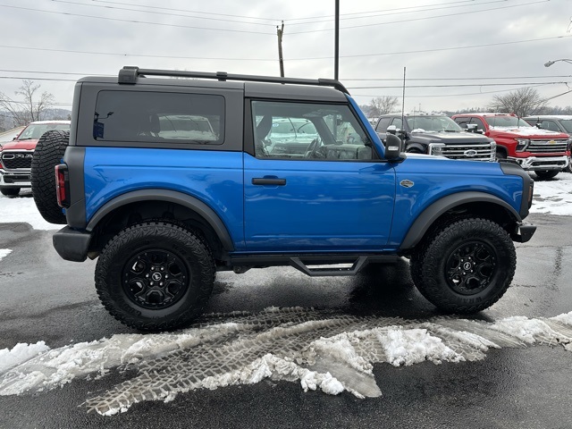 Recent Arrival!Bronco Wildtrak, 2D Sport Utility, 2.7L EcoBoost V6, 10-Speed Automatic, 4WD, Blue Metallic, Black Cloth.Moses Auto Group utilizes "MARKET VALUE PRICING" on all the vehicles in our inventory. We use real-time market data to ensure that all our customers enjoy a hassle-free buying experience and the best value possible. That, along with the largest selection of over 3500 quality cars, trucks, and SUVs in the tristate WV, KY, and OH area (as well as the surrounding cities of Charleston, Huntington, and Morgantown), has our loyal client base coming back again and again. Come to Moses today and experience the car-buying process as it should be- Driven By You.2022 Ford Bronco WildtrakAwards: * NACTOY 2022 North American Utility of the YearThis 2022 Ford Bronco is well equipped with the following equipment...Bronco Wildtrak, 2D Sport Utility, 2.7L EcoBoost V6, 10-Speed Automatic, 4WD, Blue Metallic, Black Cloth, 4-Wheel Disc Brakes, 6 Speakers, ABS brakes, Air Conditioning, AM/FM radio: SiriusXM with 360L, AM/FM Stereo, Auto High-beam Headlights, Black Roof Rails w/Crossbars, Brake assist, Compass, Convertible HardTop, Convertible roof lining, Delay-off headlights, Driver door bin, Driver vanity mirror, Dual front impact airbags, Dual front side impact airbags, Electronic Stability Control, Emergency communication system: 911 Assist, Exterior Parking Camera Rear, Ford Performance Heavy-Duty Modular Front Bumper, Front anti-roll bar, Front Bucket Seats, Front Center Armrest, Front License Plate Bracket, Front reading lights, Front wheel independent suspension, Fully automatic headlights, Glass rear window, Heated door mirrors, Illuminated entry, Integrated roll-over protection, Low tire pressure warning, Occupant sensing airbag, Outside temperature display, Overhead airbag, Overhead console, Panic alarm, Passenger door bin, Passenger vanity mirror, Power door mirrors, Power steering, Power windows, Radio data system, Rear window defroster, Rear window wiper, Remote keyless entry, Security system, SiriusXM Radio w/360L, Speed control, Split folding rear seat, Steering wheel mounted audio controls, SYNC 4, Tachometer, Telescoping steering wheel, Tilt steering wheel, Traction control, Trip computer, Variably intermittent wipers, and Wheels: 17" Black High Gloss-Painted Aluminum Want your customer experience to be as unrivaled as your next BMW? Discover the Difference at Moses BMW where friendly, professional associates simplify your buying experience and provide real value. See our Google and [link] reviews to hear why even out-of-state customers say they will drive over 500 miles again to experience our friendly and fast service. Call [phone] today to set your VIP appointment with one of our experienced managers to help you find your perfect match today.