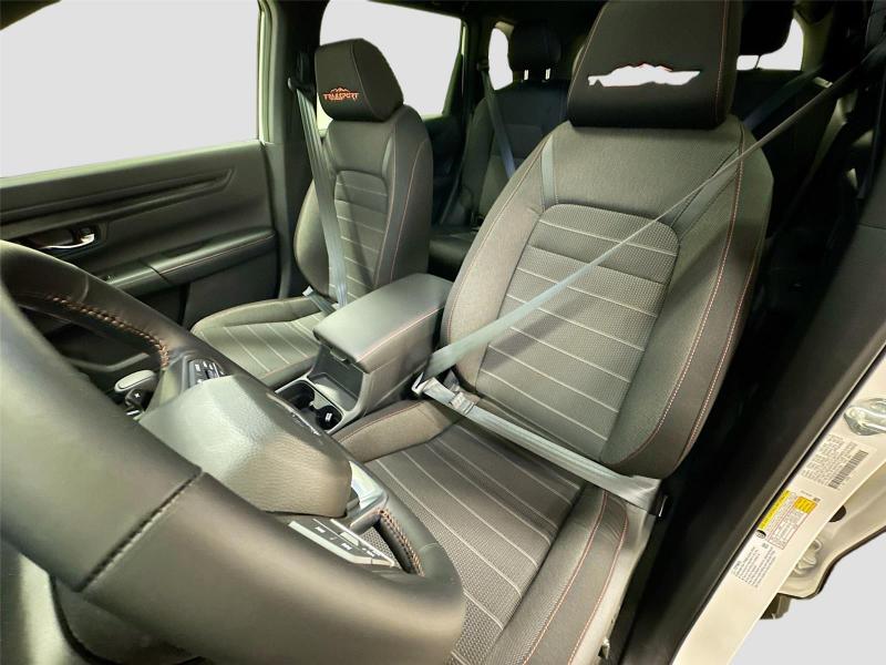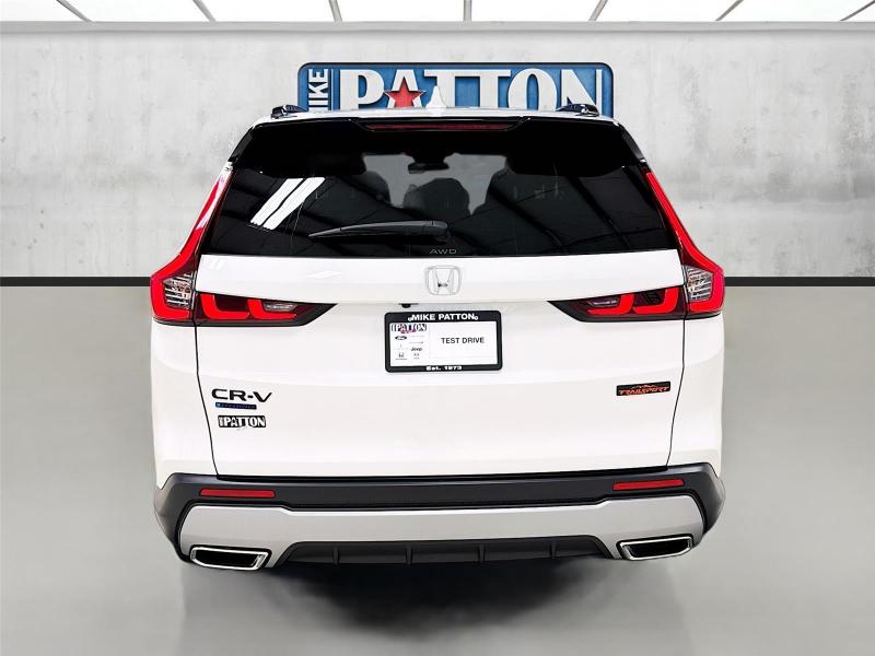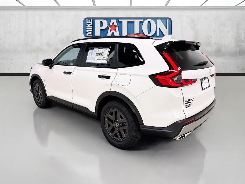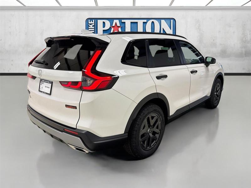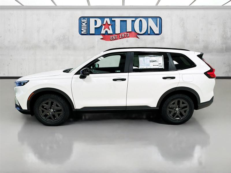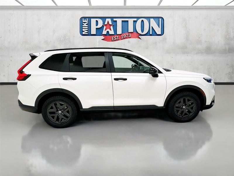 This New 2026 Honda CR-V Hybrid TrailSport, is Platinum White Pearl in color with an Black interior. Stock Number 626300. You can connect with us by calling [phone].\n\n\n \n\nImportant Package and Feature Information\n\n\n\n\n\nSafety and Security Forward collision mitigation - Forward thinking. You look away for just a second and suddenly the vehicle in front of you has stopped. That's when the forward collision mitigation system comes to life. When it senses an impending impact, it will activate a combination of features to help prevent or reduce the severity of an accident. Forward collision mitigation is always looking ahead. Pedestrian impact prevention - An extra step toward safety. Pedestrians don't always stop, look, and listen, but with Pedestrian Impact Prevention, your vehicle is equipped to better see them and avoid them. This system constantly monitors the road ahead to identify and track pedestrians. It projects that image to an interior display screen, AND should an impact become likely, Pedestrian impact prevention takes steps to avoid a collision. Hands-on cruise control. Set it and forget it. Road trips used to be stressful. Cruise control only managed speed, but not distance or safety. Now, with hands-on cruise control, simply set your desired speed and let sensor technology maintain a safe distance between you and surrounding vehicles. It slows you down; speeds you up and even keeps you in your own lane. Meet your ultimate co-pilot with hands-on cruise control.Technology and Telematics Apple CarPlay/Android Auto smart device wireless mirroring Mobile hotspot - WiFi on the fly. Connect your devices to the Internet through your vehicle's private mobile hotspot and take the internet wherever your journey takes you, without eating up your data allowance. Find the hotspot with mobile hotspot.\n\nPLATINUM WHITE PEARL, BLACK, CLOTH SEAT TRIM \n At Mike Patton Honda, we're here to Serve you! Our staff is 100% dedicated to customer satisfaction and we understand that you need clear, transparent information throughout the car buying process. With our live market pricing philosophy, we offer the right cars at the right price, and the transparency to back it up!\n
