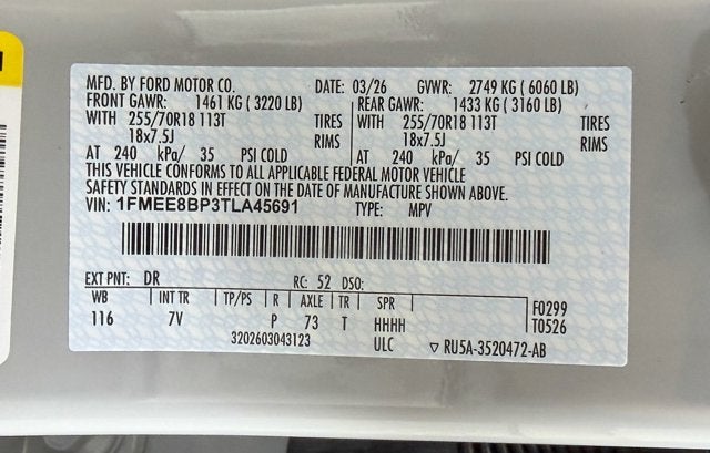 - Vin Number 1FMEE8BP3TLA45691
